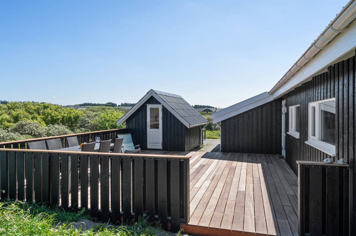 DraußenDie Ferienunterkunft liegt auf einem 2500 m² großen Naturgrundstück. Die Entfernung zum Meer beträgt 110 m. Die nächste Einkaufsmöglichkeit liegt 1500 m entfernt. Es steht ein 50 m² Terrassenareal zur Verfügung. Parkplatz auf dem Grundstück.