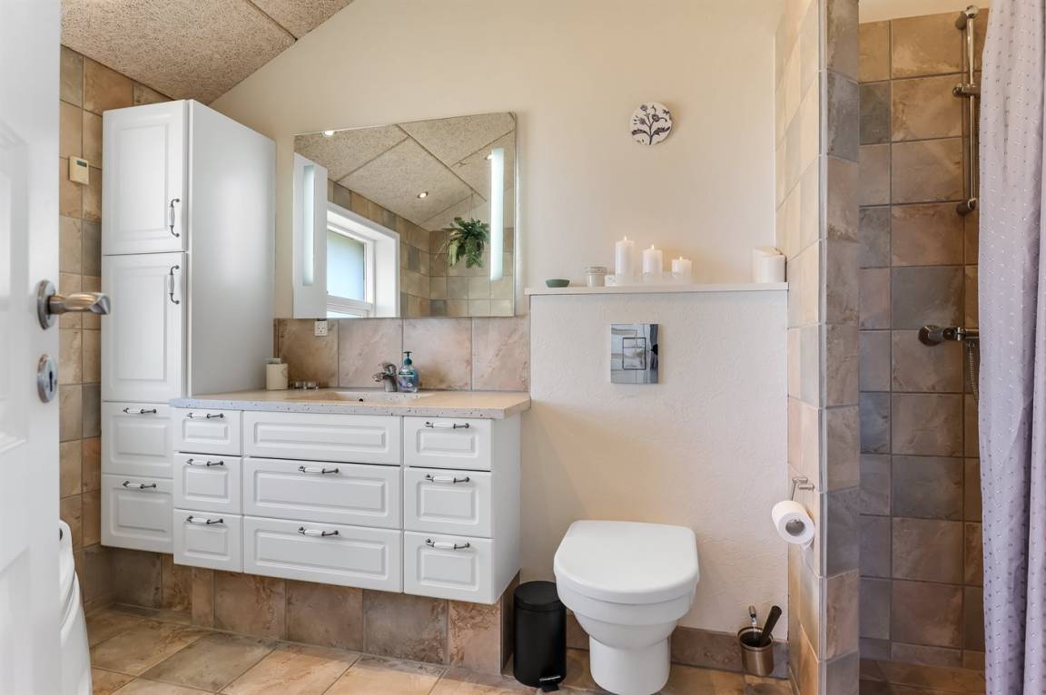 WC und BadEs gibt 1 Badezimmer mit Duschnische und 2 Toiletten, davon 1 Gästetoilette. Fußbodenheizung in 1 Badezimmer. Fußbodenheizung in der Gästetoilette.