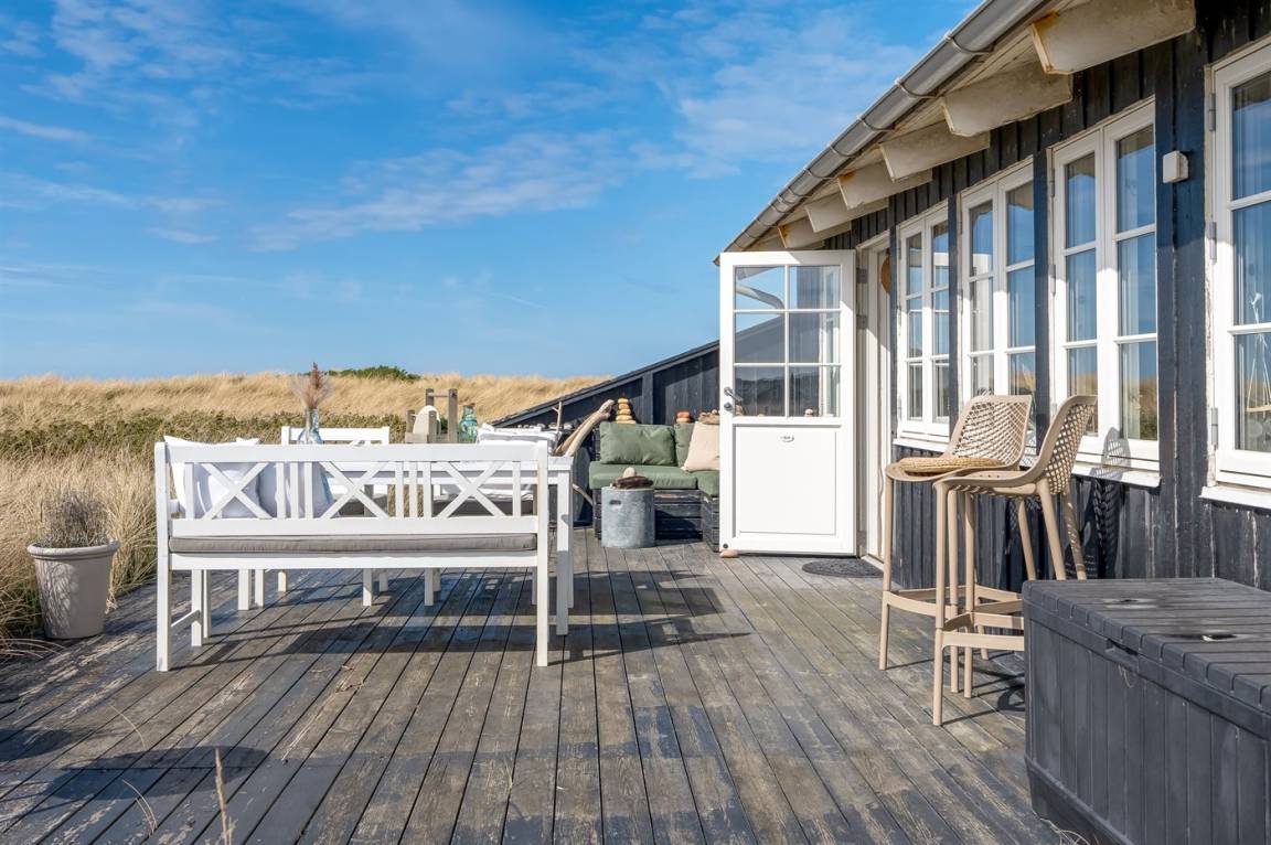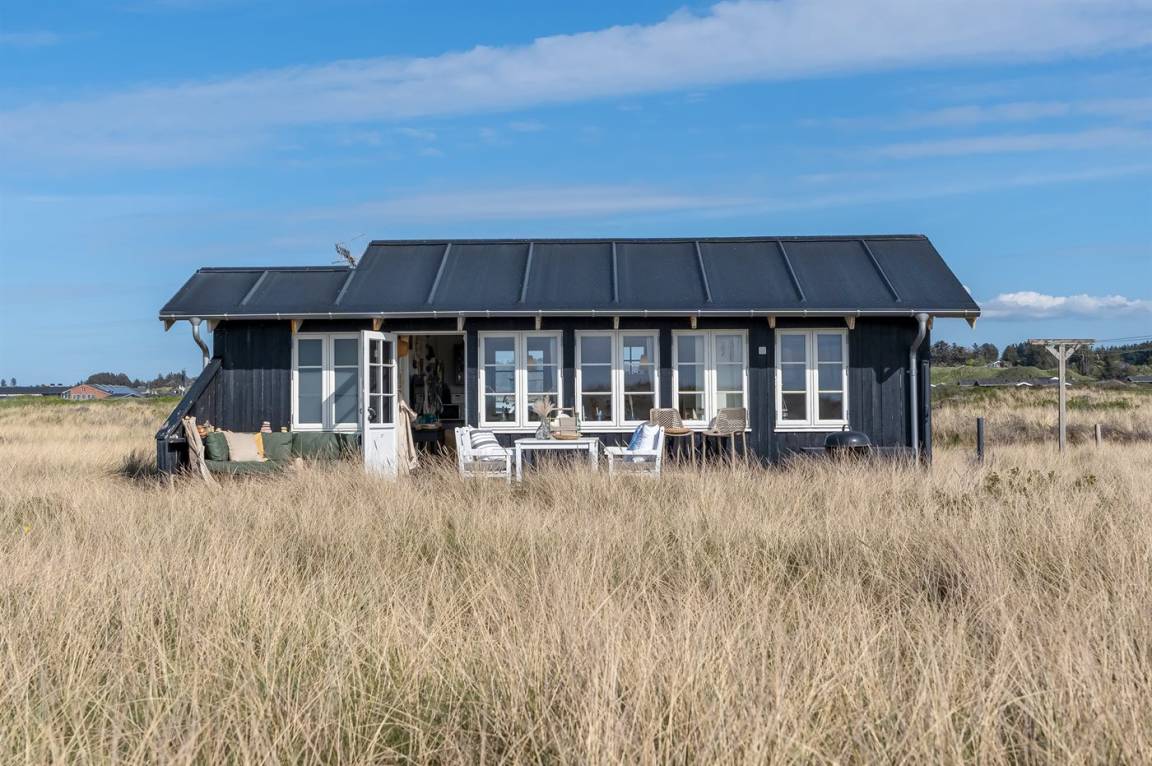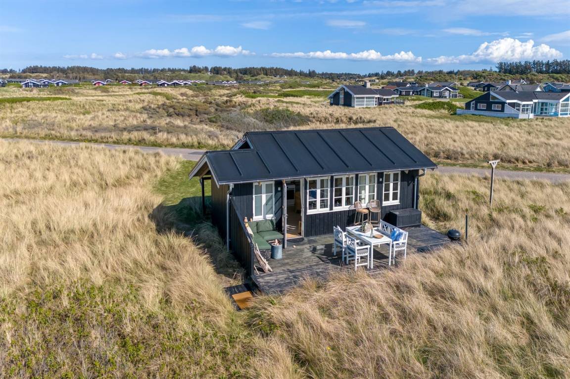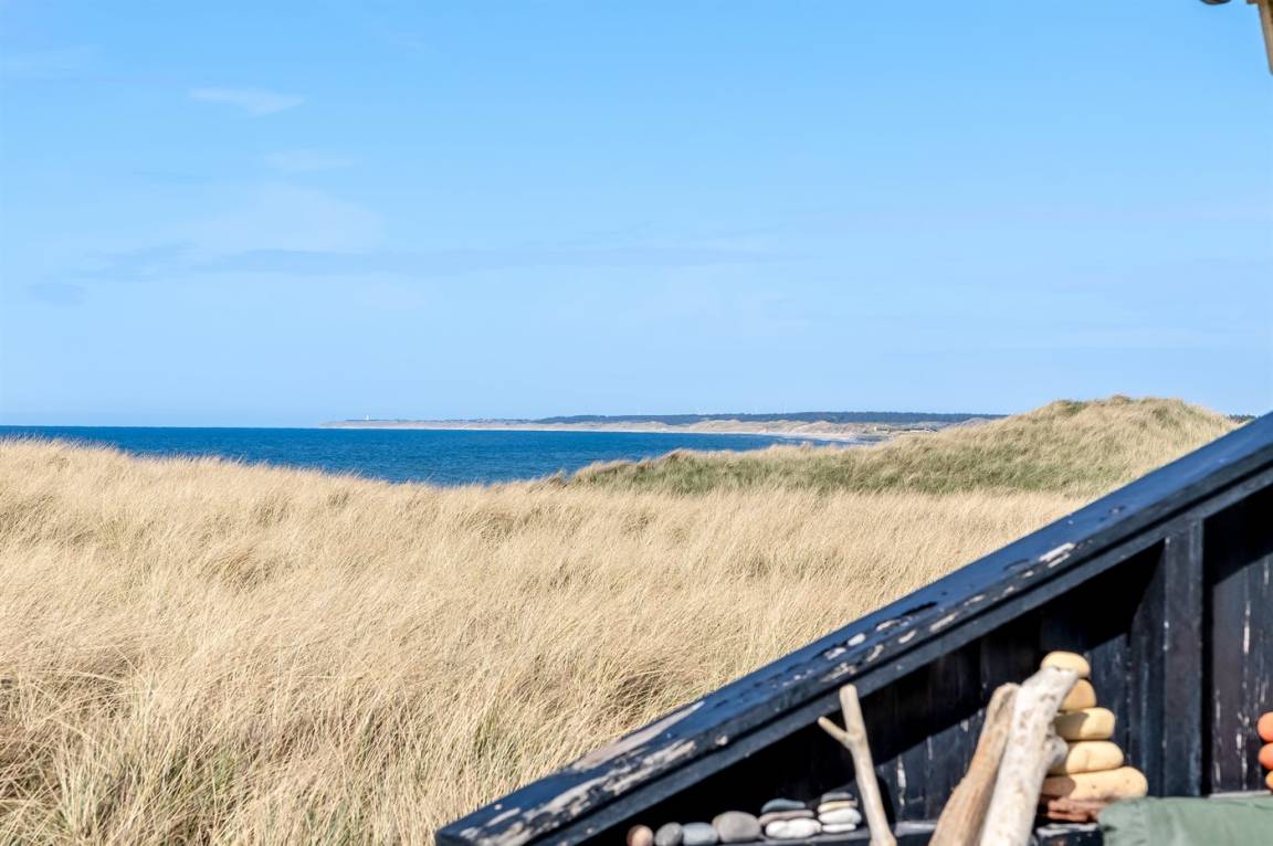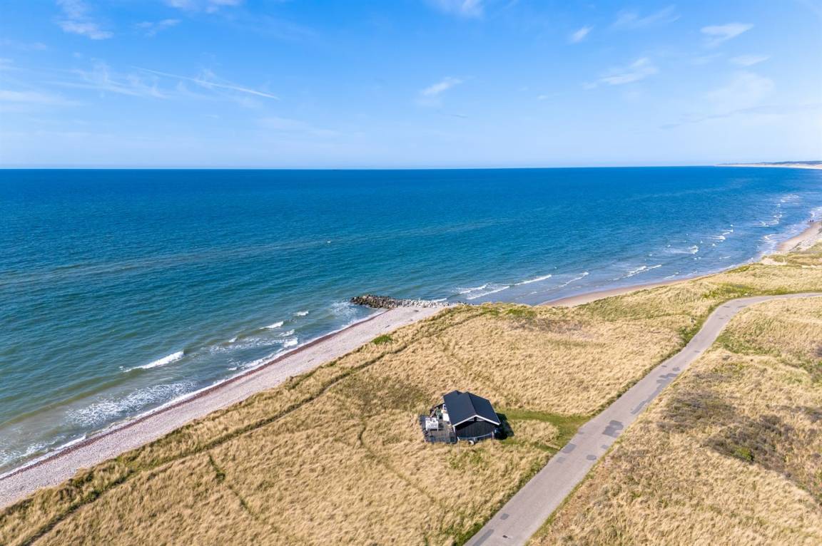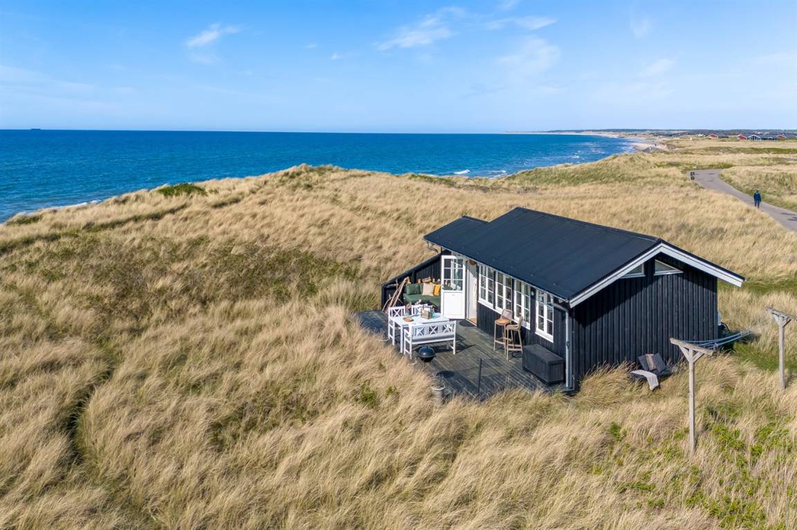 DraußenDie Ferienunterkunft liegt auf einem 3000 m² großen Dünengrundstück. Die Entfernung zum Meer beträgt 20 m. Die nächste Einkaufsmöglichkeit liegt 500 m entfernt. Es steht ein 30 m² Terrassenareal zur Verfügung. Parkplatz auf dem Grundstück.