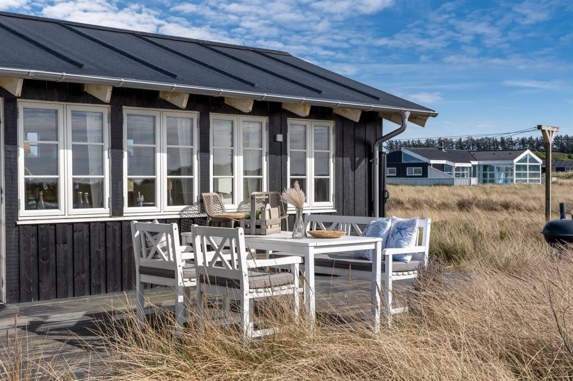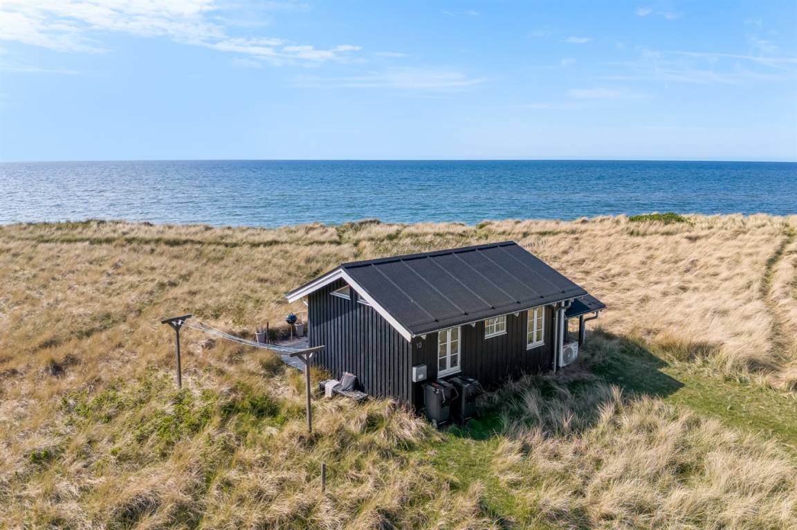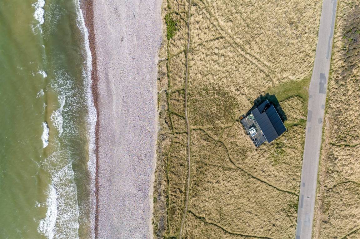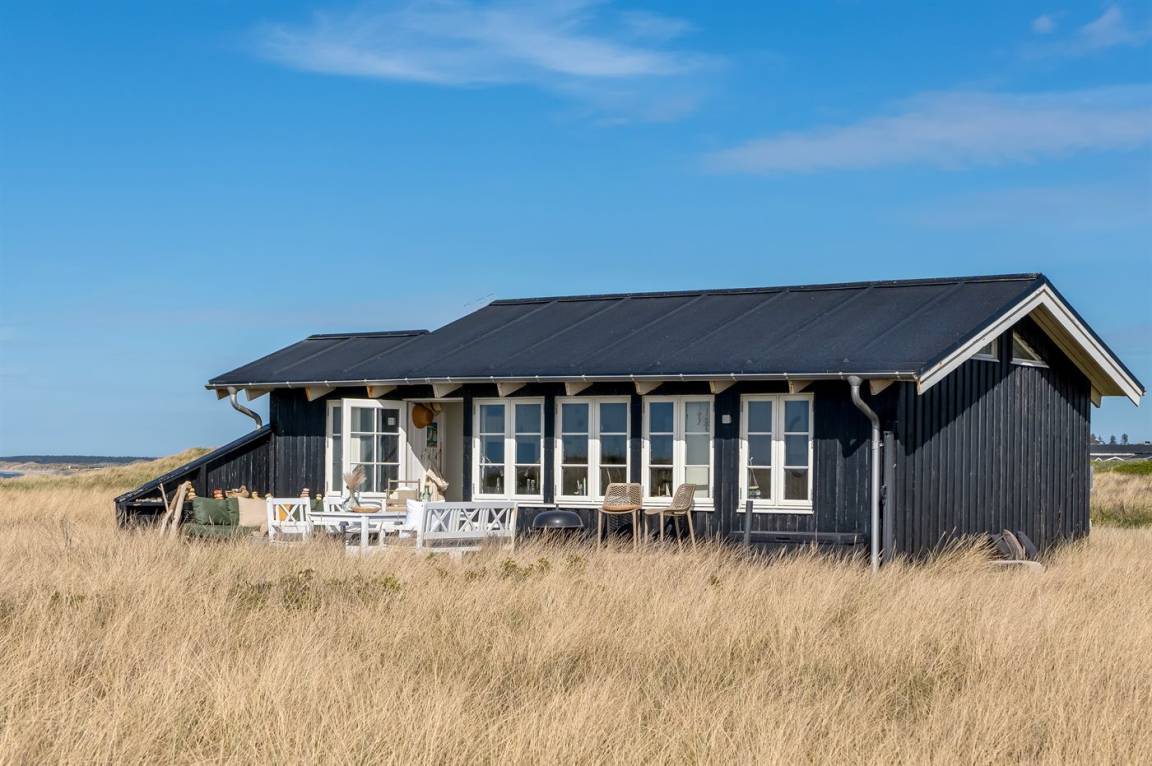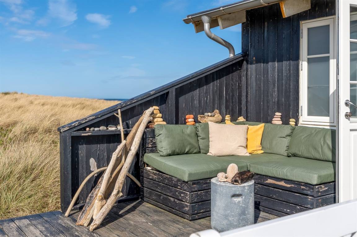 DraußenDie Ferienunterkunft liegt auf einem 3000 m² großen Dünengrundstück. Die Entfernung zum Meer beträgt 20 m. Die nächste Einkaufsmöglichkeit liegt 500 m entfernt. Es steht ein 30 m² Terrassenareal zur Verfügung. Parkplatz auf dem Grundstück.