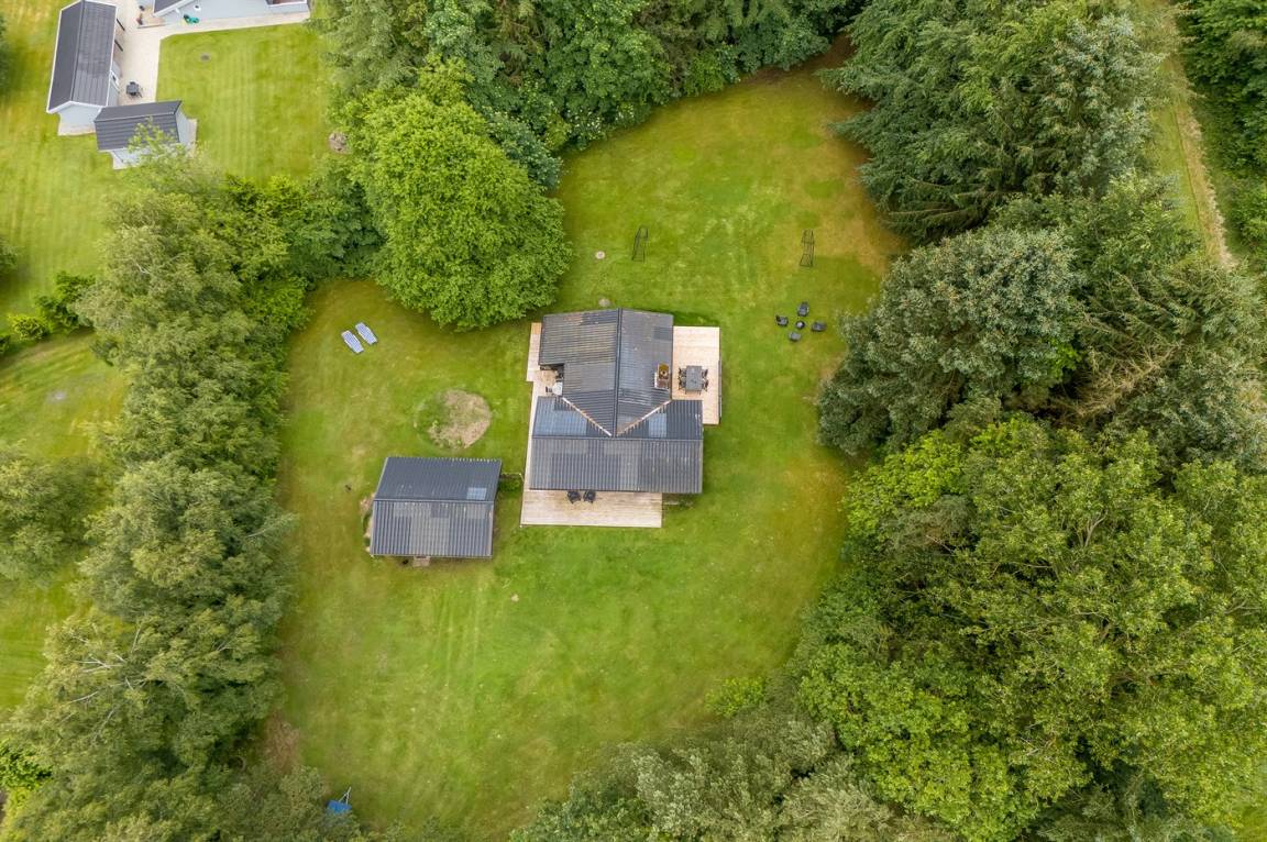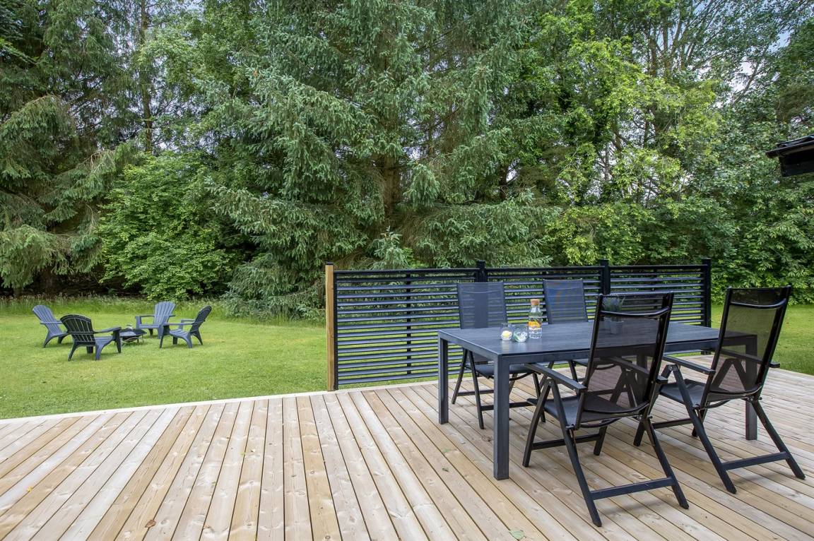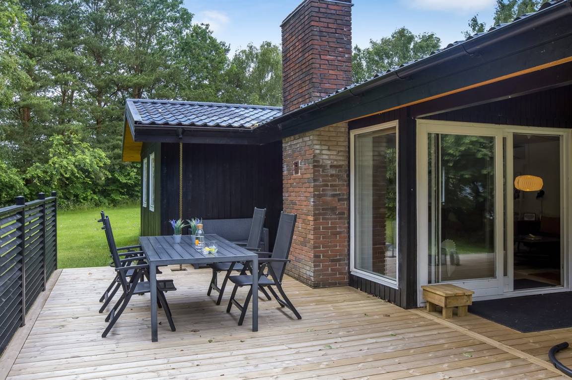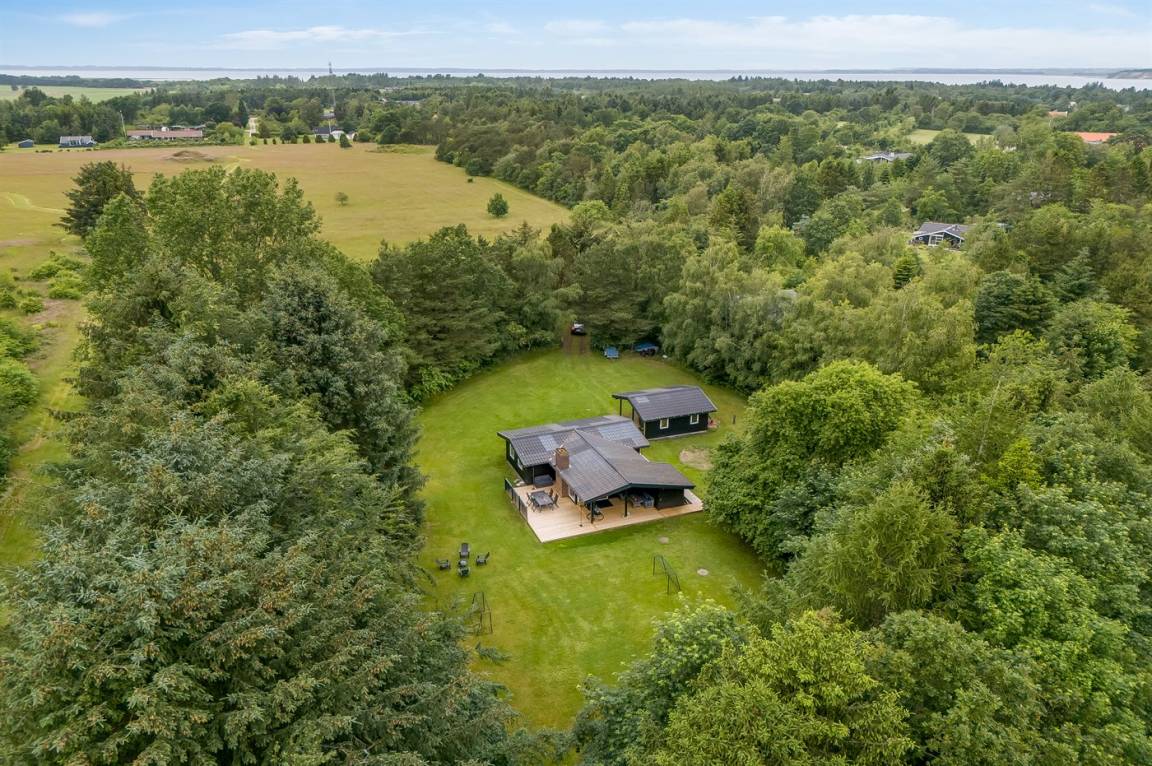 DraußenDie Ferienunterkunft liegt auf einem 3414 m² großen Gründstück, das in einem Wald/Plantage liegt. Die Entfernung zum Fjord beträgt 250 m. Die nächste Einkaufsmöglichkeit liegt 6000 m entfernt. Es steht ein 70 m² Terrassenareal zur Verfügung. Außerdem gibt es 20 m² überdachte Terrasse. Parkplatz auf dem Grundstück.