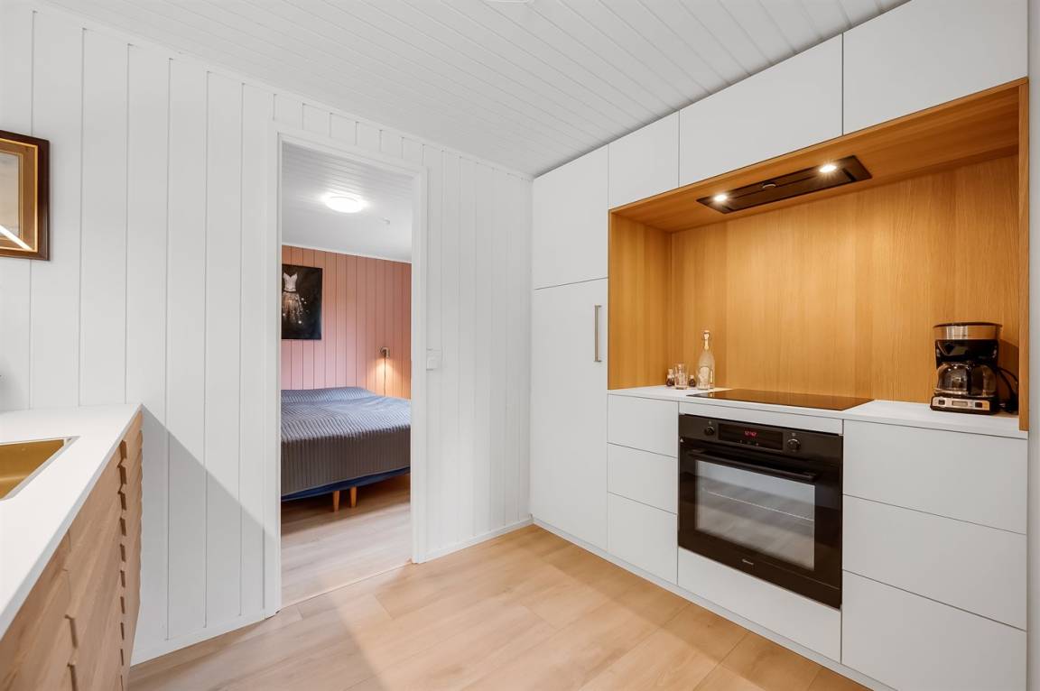 Hier bekommst du ein schön modernisiertes Sommerhaus, das Privatsphäre bietet und gute Möglichkeiten, um alle Vorzüge der malerischen Lage zu genießen. Du kannst die guten Gemeinschaftsbereiche am Fjord und die schönen Wanderwege nutzen, was einzigartige Möglichkeiten bietet, die Natur aktiv zu erleben, zum Beispiel durch Spaziergänge und Wanderungen.