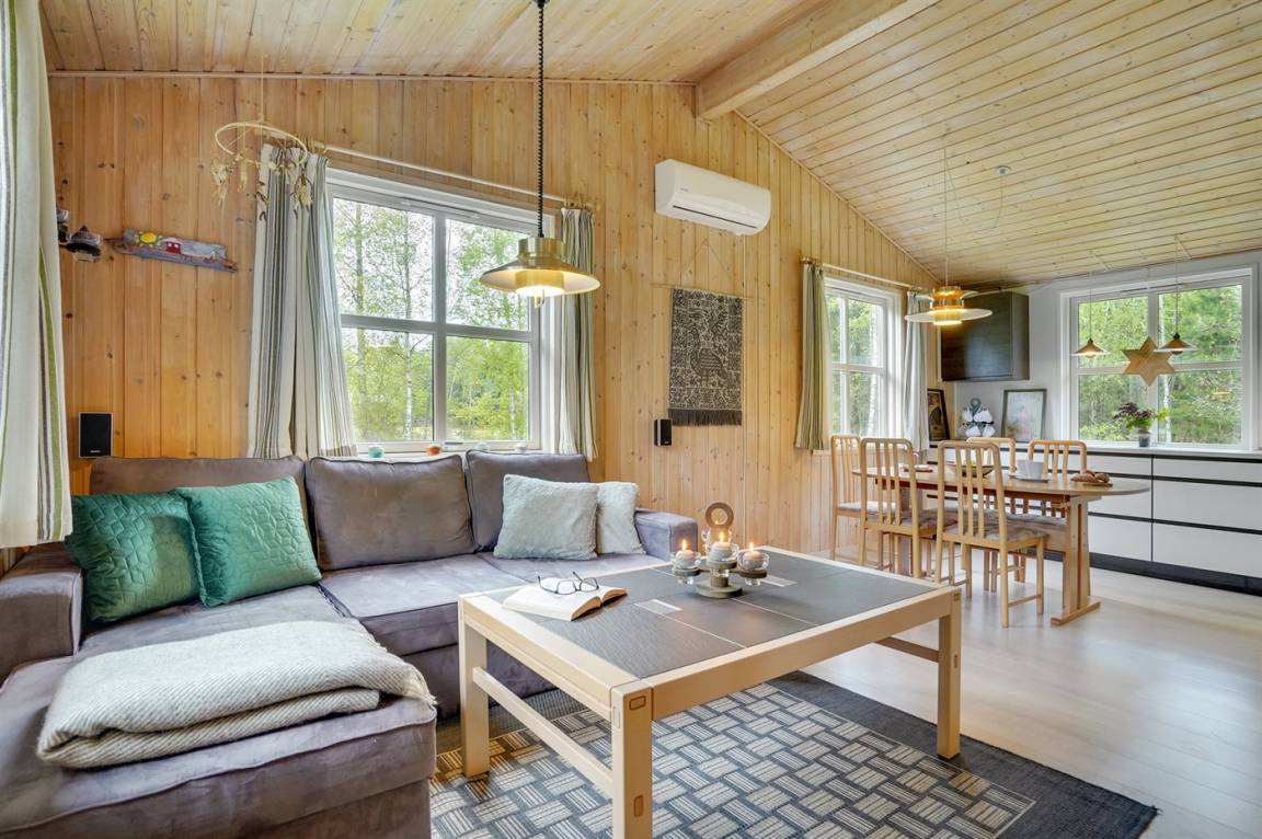 Dieses gemütliche Ferienhaus liegt umgeben von den Bäumen des Waldes und bietet einen Ausblick aus den Limfjord. Nicht selten kommen hier Rehe und andere Waldtiere vorbei. Wenn Sie Wassersport auf dem Limfjord machen möchten, eignet sich dieses Haus optimal, da Sie Ihre Ausrüstung auf der überdachten Terrasse lagern können. Am Hafen von Virksund kann man stundenlang einfach nur dasitzen und die Schiffe beobachten, die ein- und auslaufen. Wenn Ihnen nach etwas Süßem ist, gibt es ganz in der Nähe eine Eisdiele.