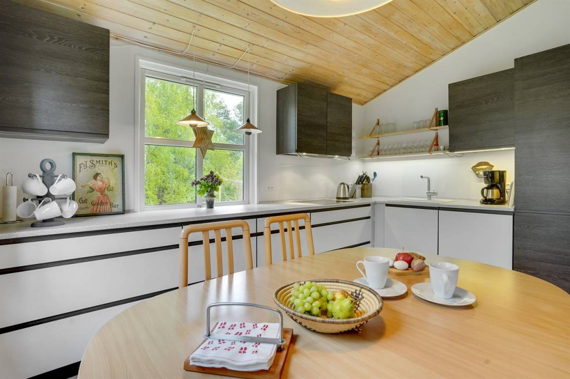 DraußenDie Ferienunterkunft liegt auf einem 2834 m² großen Gründstück, das in einem Wald/Plantage liegt. Die Entfernung zum Fjord beträgt 150 m. Die nächste Einkaufsmöglichkeit liegt 8000 m entfernt. Es steht ein offenes Terrassenareal zur Verfügung. Außerdem gibt es überdachte Terrasse. Geräteraum. Schaukel. Sandkasten. Rutsche. Es steht ein Grill zur Verfügung. Parkplatz auf dem Grundstück.