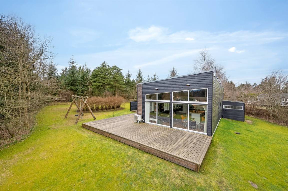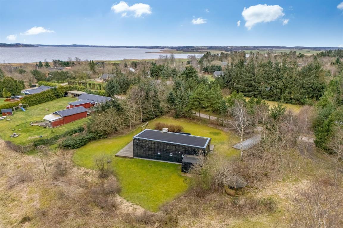 DraußenDie Ferienunterkunft liegt auf einem 1680 m² großen Naturgrundstück. Die Entfernung zum Fjord beträgt 250 m. Die nächste Einkaufsmöglichkeit liegt 3000 m entfernt. In einem Abstand von 7000 m gibt es einen Golfplatz. Es steht ein 125 m² Terrassenareal zur Verfügung. Schaukel. Außendusche. Parkplatz auf dem Grundstück.