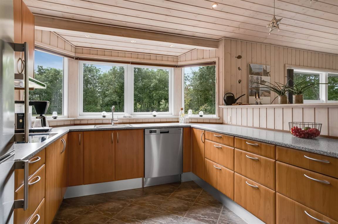 DraußenDie Ferienunterkunft liegt auf einem 2510 m² großen Naturgrundstück. Das Grundstück ist eingezäunt. Die Entfernung zum Fjord beträgt 500 m. Die nächste Einkaufsmöglichkeit liegt 1500 m entfernt. Es steht ein 80 m² Terrassenareal zur Verfügung. Außerdem gibt es 20 m² überdachte Terrasse. Geräteraum. Schaukel. Sandkasten. Es steht ein Carport zur Verfügung. Parkplatz auf dem Grundstück.