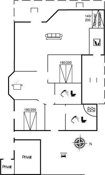 SchlafverhältnisseDie Schlafplätze verteilen sich auf 2 Schlafräume. 4 Schlafplätze in Doppelbetten.2 Schlafplätze im Alkoven. 2 von diesen Schlafplätzen befinden sich im Wohnzimmer. Ferner steht ein Kinderbett zur Verfügung.
