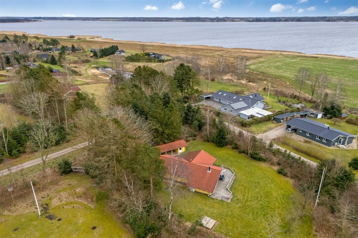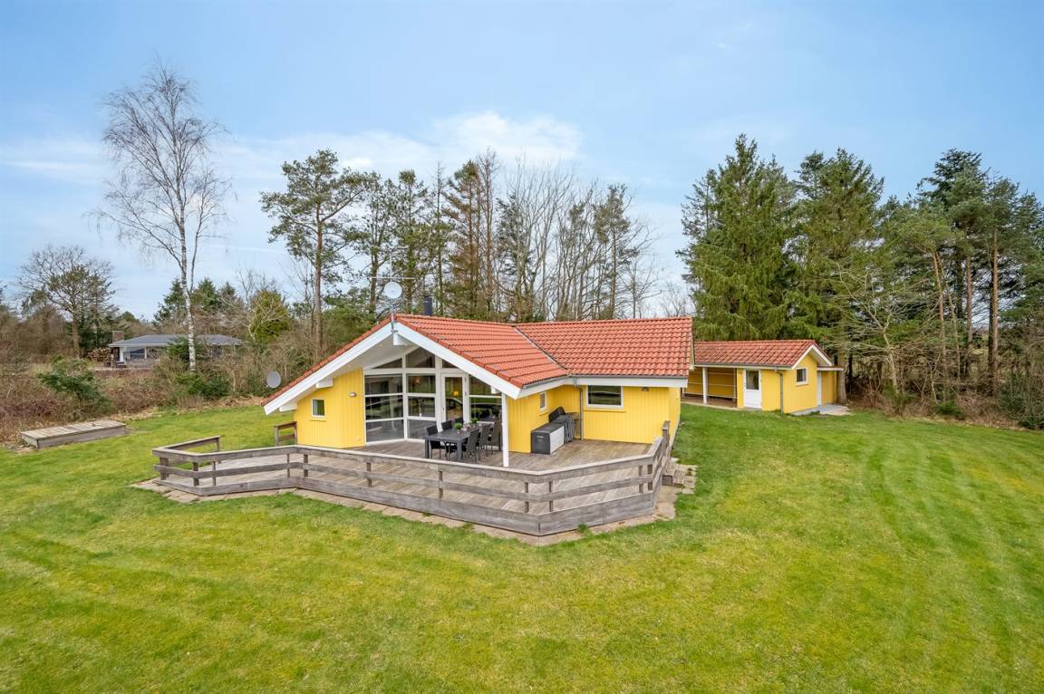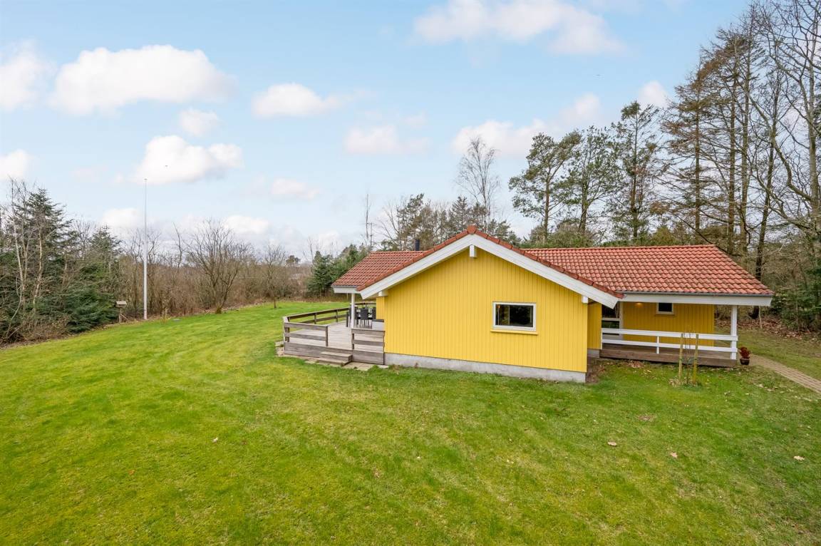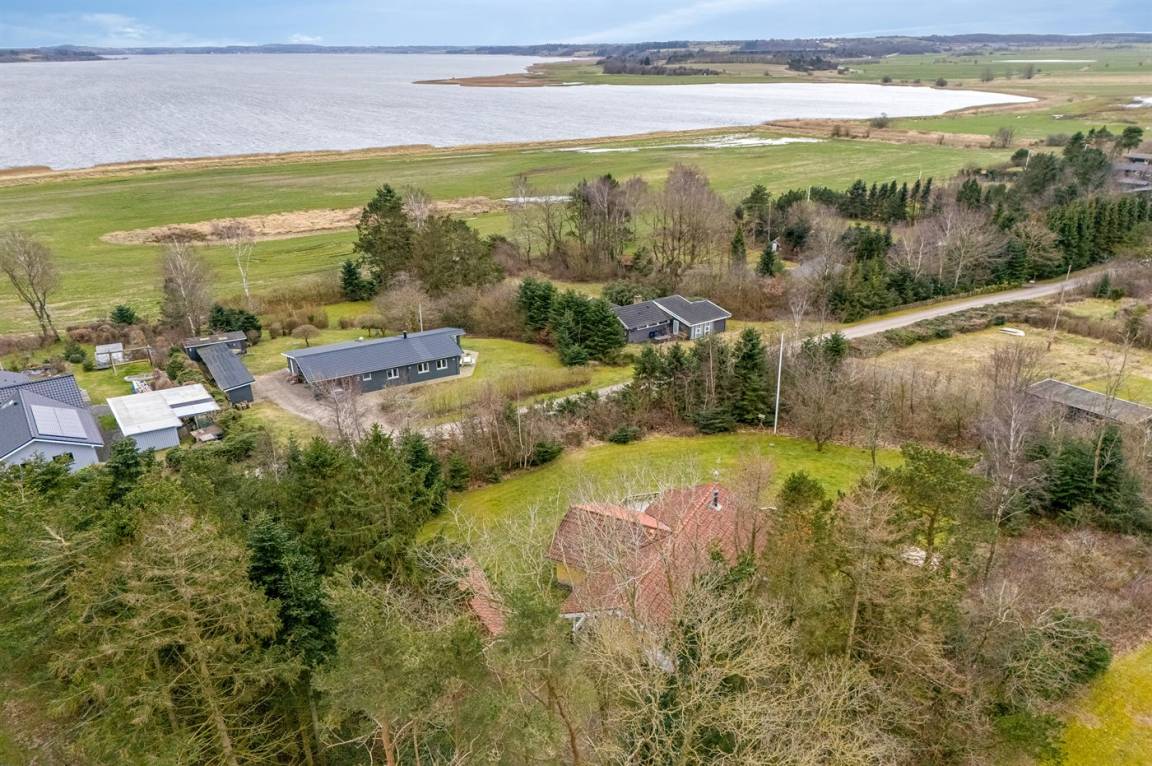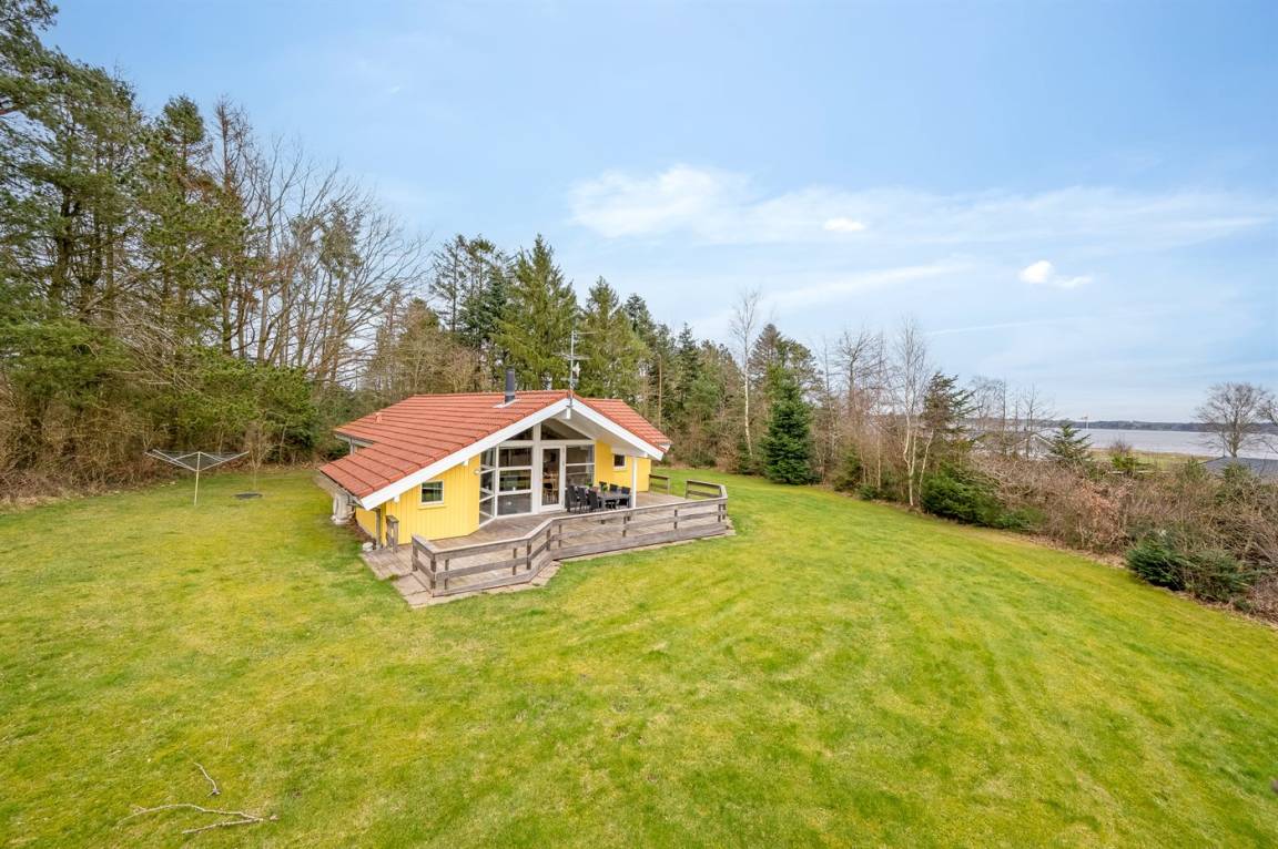 Schönes Ferienhaus auf einem Naturgrundstück gelegen und mit Blick auf den 300 m entfernt gelegenen Fjord vom Grundstück.