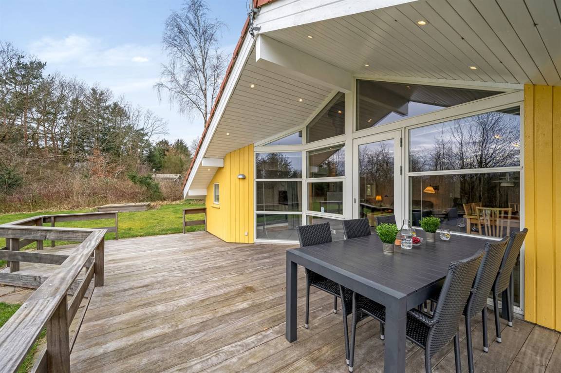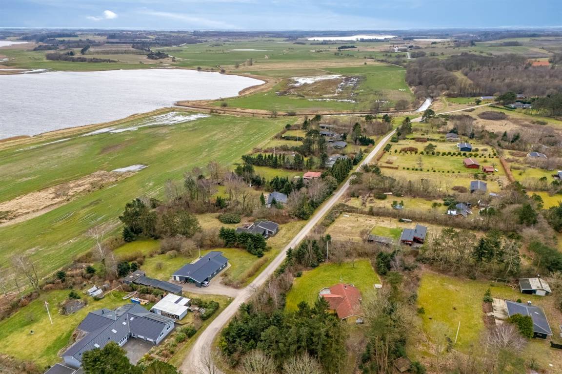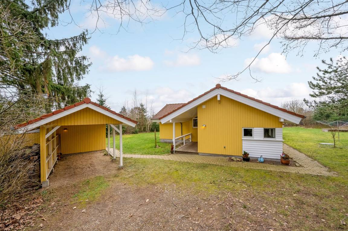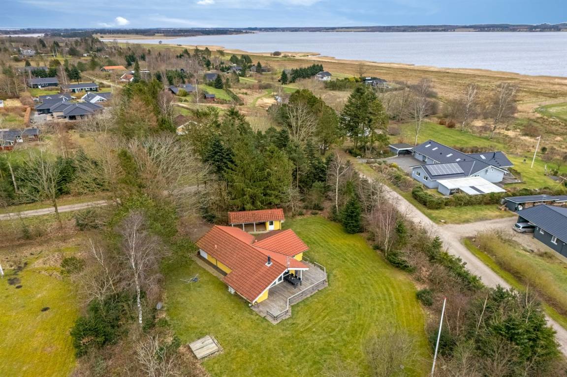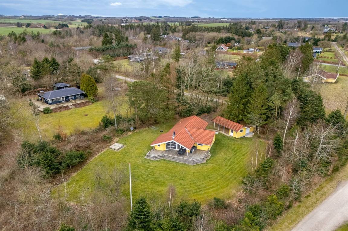 Schönes Ferienhaus auf einem Naturgrundstück gelegen und mit Blick auf den 300 m entfernt gelegenen Fjord vom Grundstück.