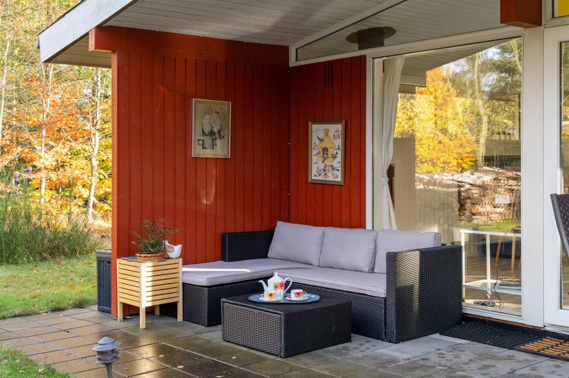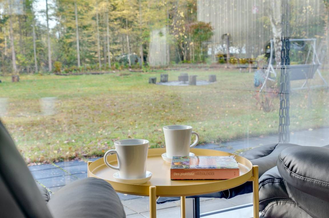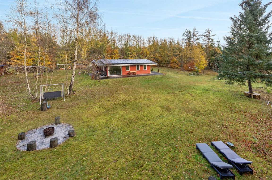 DraußenDie Ferienunterkunft liegt auf einem 2585 m² großen Gründstück, das in einem Wald/Plantage liegt. Das Grundstück ist eingezäunt. Die Entfernung zum Fjord beträgt 400 m. Die nächste Einkaufsmöglichkeit liegt 4000 m entfernt. Es steht ein offenes Terrassenareal zur Verfügung. Außerdem gibt es überdachte Terrasse. Parkplatz auf dem Grundstück.