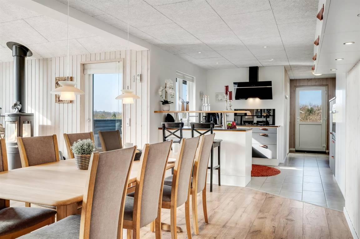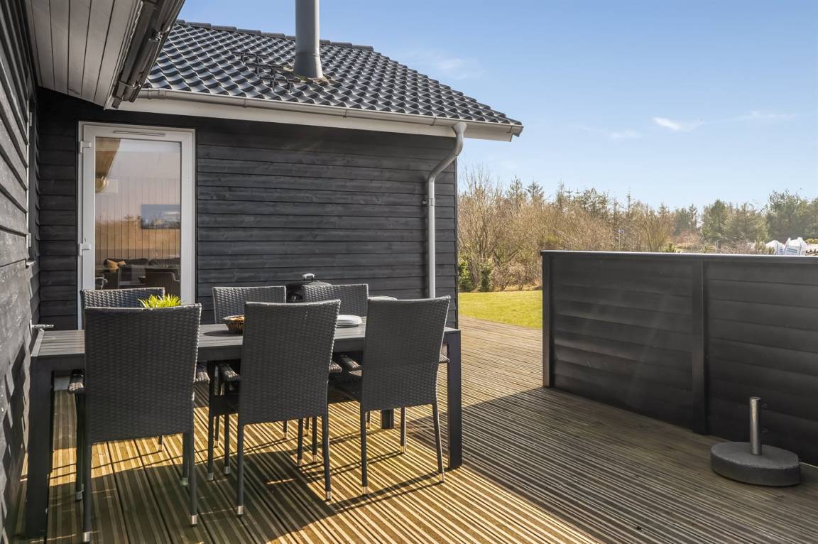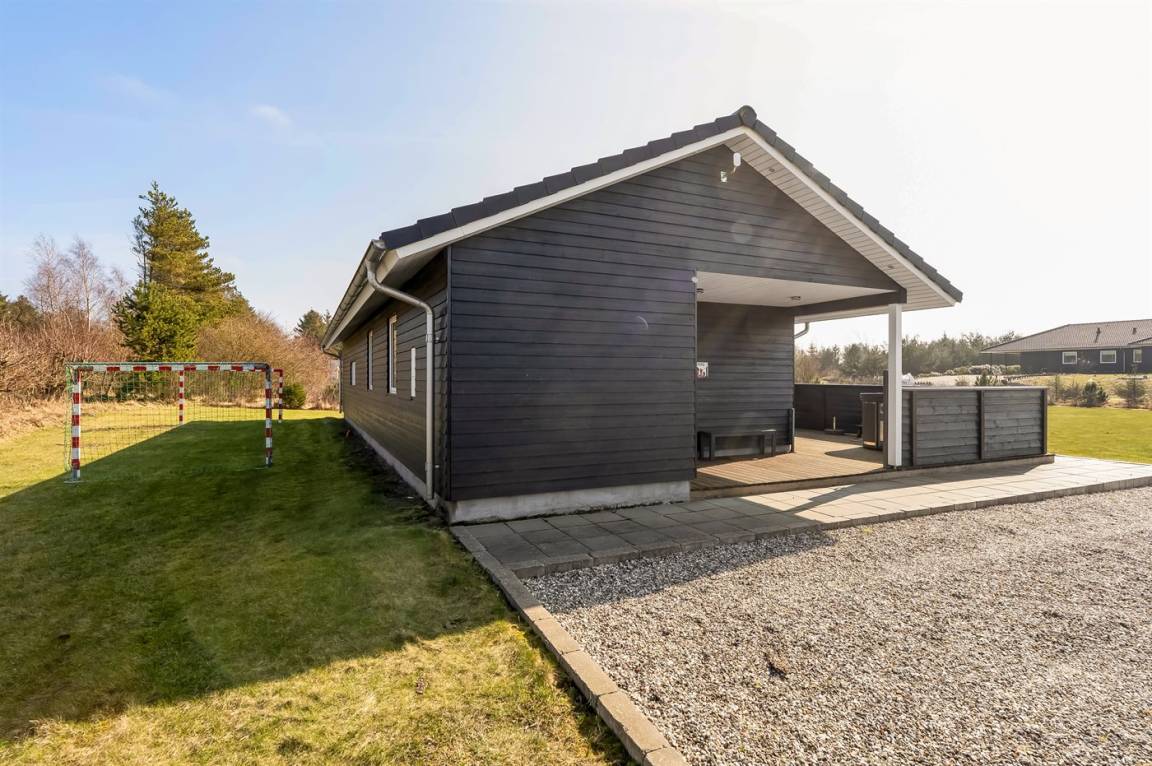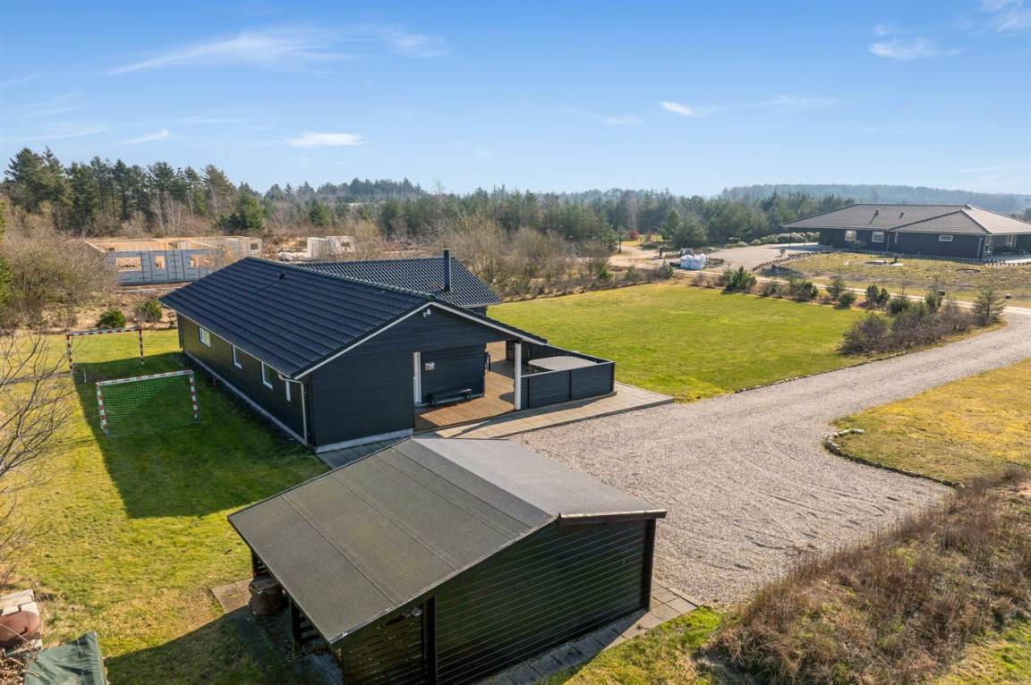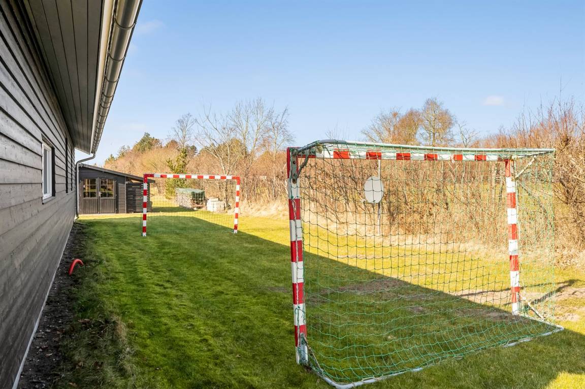 DraußenDie Ferienunterkunft liegt auf einem 2581 m² großen Naturgrundstück. Die Entfernung zum Fjord beträgt 600 m. Es gibt einen Badesteg in der Nähe. Die nächste Einkaufsmöglichkeit liegt 6000 m entfernt. In einem Abstand von 10000 m gibt es einen Golfplatz. Es steht ein offenes Terrassenareal zur Verfügung. Fußballtor. Die Entfernung zu einem Spielplatz beträgt 600 m. Es steht ein Grill zur Verfügung. Parkplatz auf dem Grundstück.