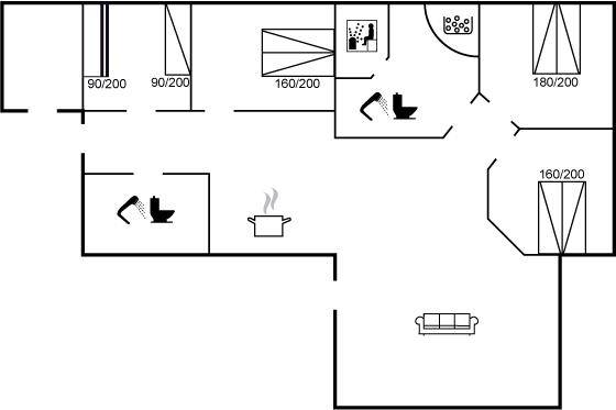 SchlafverhältnisseDie Schlafplätze verteilen sich auf 4 Schlafräume. 6 Schlafplätze in Doppelbetten.1 Schlafplatz in einem Einzelbett. 2 Schlafplätze in einem Etagenbett.