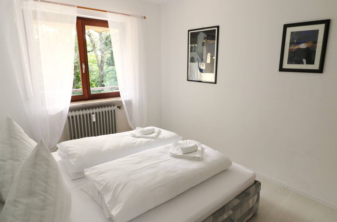 The kitchenette in the living room is fully equipped with cooker, oven, refrigerator, coffee maker, kettle, toaster, microwave and kitchen utensils. The dining area with 4 chairs is also located in the living room. Wifi is available in the flat.