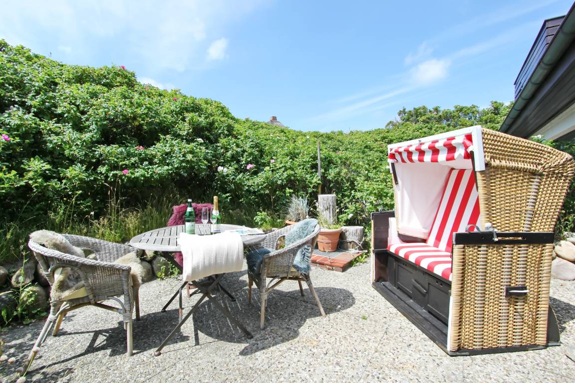Modernes und ganz ruhig gelegenes 3 Zi.-Appartement in Herzen von Hörnum. Das Objekt bietet auf seinen ca. 55qm Platz für bis zu vier Personen. Aufgeteilt ist das Appartement über zwei Ebenen EG/UG. Im Erdgeschoss befindet sich ein großes, lichtdurchflutetes Wohnzimmer mit offener Einbauküche, Esstisch, Couch, Couchtisch, Vitrinenschrank sowie dem Zugang zur Westterrasse. Dort befindet sich ein Strandkorb und Terrassenmöbel, um geschützt die Sonne genießen zu können.