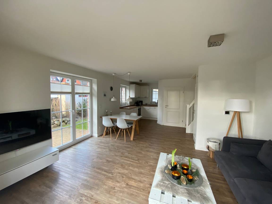 Das Endhausteil hat eine Größe von ca. 84 m² und bietet Platz für bis zu 6 Personen. Im EG befindet sich ein großer Wohnraum mit offener Einbauküche und Essplatz. Die gemütliche Couch und Ledersessel lädt zum Verweilen ein. In der Einbauküche befindet sich ein Backofen, Geschirrspüler, Kühlschrank mit Gefrierfach, Cerankochfeld, etc. Vom Wohnraum können Sie auf die Süd-/Westterrasse) gehen. Dort sind Terrassenmöbel und auch ein Strandkorb in dem Sie die Sonnenstunden genießen können. Eine Abseite unter der Treppe bietet ausreichend Stauraum für Ihr Gepäck. Im oberen Hausteil befinden sich drei Schlafräume. Ein Schlafzimmer mit einem Doppelbett (180 x 200 cm), eines mit einem französischen Doppelbett (140 x 200 cm) und ein weiterer Schlafraum mit einem französischen Doppelbett (160 x 200 cm) sowie Einbauschränke die ausreichend Platz bieten. Duschbad/WC. Alle Schlafräume haben einen TV-Anschluss. Im EG befindet sich noch ein Gäste-WC. Ein PKW-Stellplatz befindet sich direkt vor dem Haus. Die Tierhaltung ist gestattet! Nichtraucher Haus auf Sylt