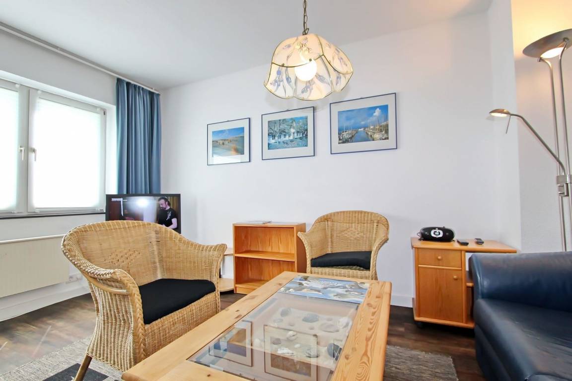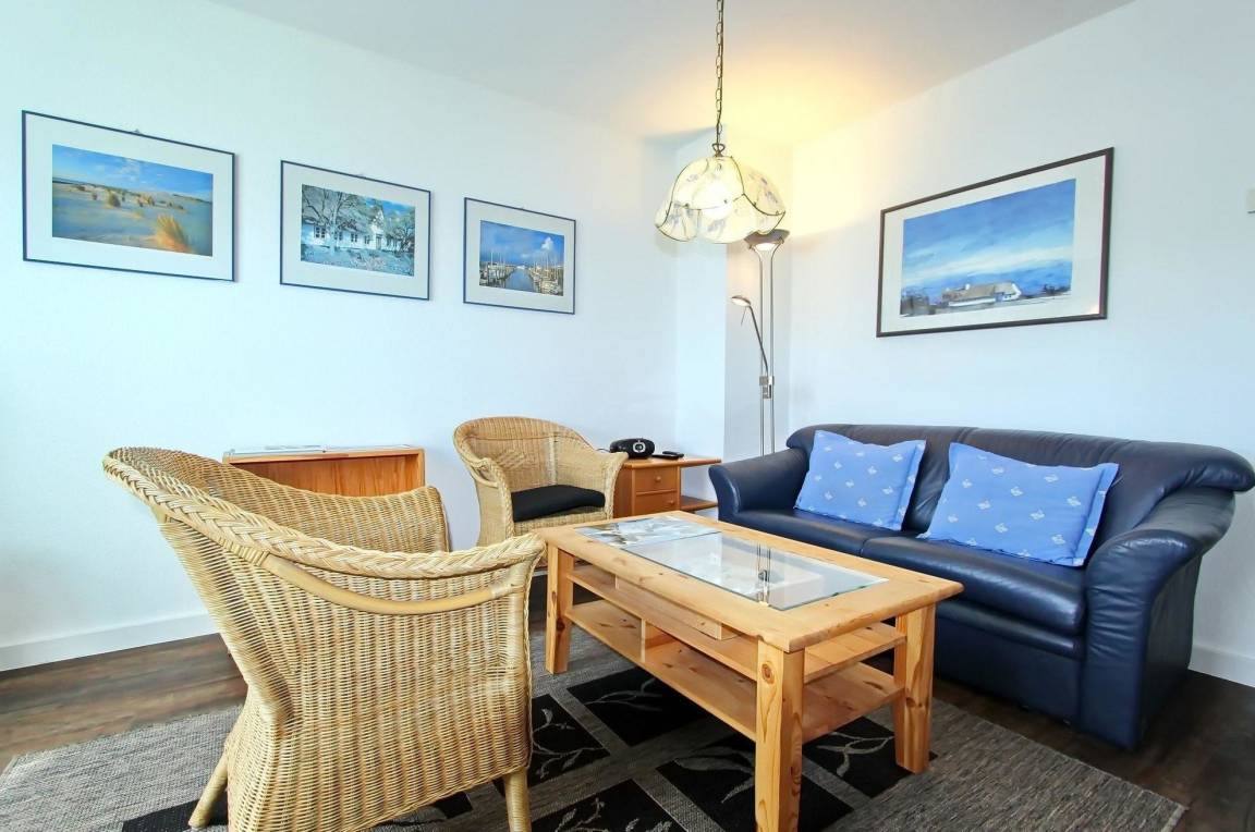 gepflegtes 2 Zi.-App. mit ca. 41 m² im Herzen von Hörnum. Die Nichtraucher Wohnung befindet sich im Hochparterre, in einem Mehrfamilienhaus, und bietet Platz für bis zu 4 Personen (max. 3 Erwachsene). Sie ist aufgeteilt auf ein Wohn-/Schlafraum mit einer gemütlichen Schlafcouch, Tisch, zwei Korbsessel, Vitrinen Schrank, Sat-TV und ein DVD-Player. Von Wohnzimmer gelangen zum kleinen Schlafzimmer mit einem Doppelbett (zwei Matratzen), einem großen Kleiderschrank, der ausreichend Stauraum bietet, sowie den Zugang zum Südbalkon mit Balkonmöbel.