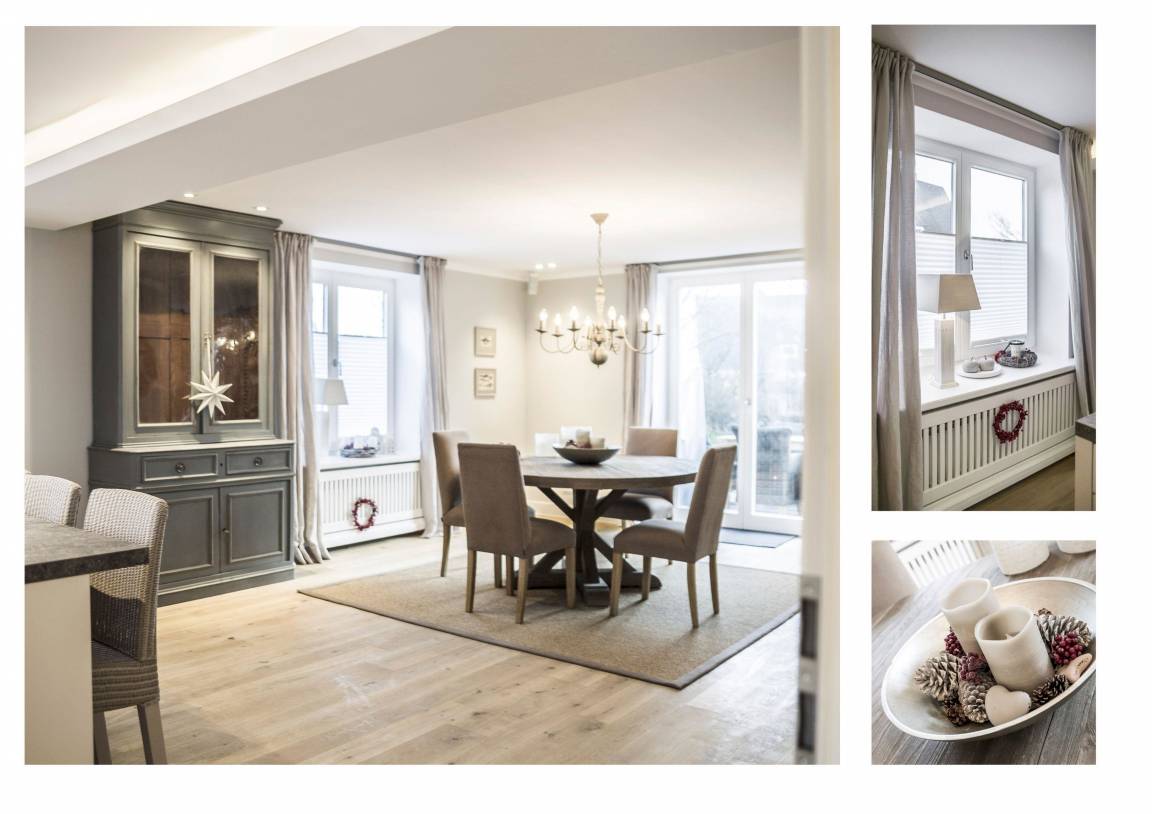 Nicht zu groß für zwei. Aber auch nicht zu klein für sechs. Im StrönHüs ist alles genau so, wie man es sich vorstellt. Sehr geschmackvoll und aufeinander abgestimmt eingerichtet. Und der Blick nach draußen weit und frei. Mit Terrasse für eigene Frühstücke. Mit schönem Saunahaus im weitläufigen Garten für lange Winterabende oder auch nur mal zwischendurch. Mit einer offenen sowie perfekten Küche auch mit eigenen Sitzgelegenheiten. Mit einer gemütlichen Piratenkoje und wohligen Schlafzimmern im Obergeschoss - wo der Blick, ebenso wie aus dem Badezimmer - direkt auf das Meer geht. Und Unterhaltungsmedien mittels modernster Bose-Technik vom Feinsten. Ein dreiseitig offener und sowohl vom Esstisch wie auch gemütlichen Sofas im Wohnbereich einsehbarer Kamin macht das Wohnambiente perfekt.