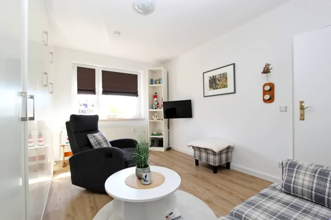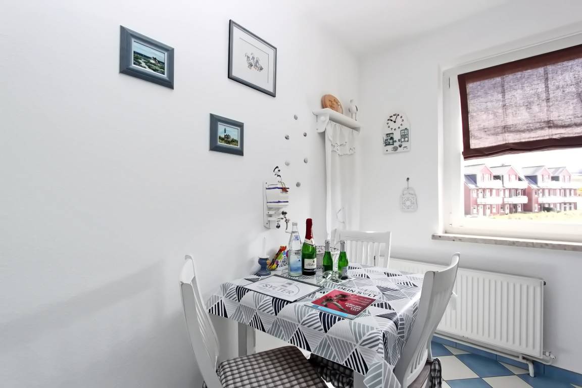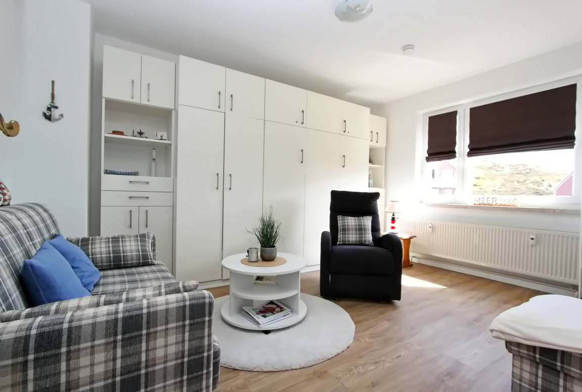 Modernes 1 Zimmer Appartement mit ca. 31 m² unweit des Hörnumer Golfplatzes im Herzen von Sylt's sonnigen Süden; 1 Wohn-/Schlafraum mit Doppelschrankbett, 2 Sitzer-Couch, gemütlicher Sessel, Tisch, Schrank und SAT-Flat-TV. Die neue separate Küche verfügt über ein 4 Platten Cerankochfeld, Backofen, Geschirrspüler, Kühlschrank, Essplatz für 2 Personen, sowie alle Utensilien, die Sie benötigen, um sich selbst zu versorgen. Neues Duschbad/WC; Flur mit Garderobe.
