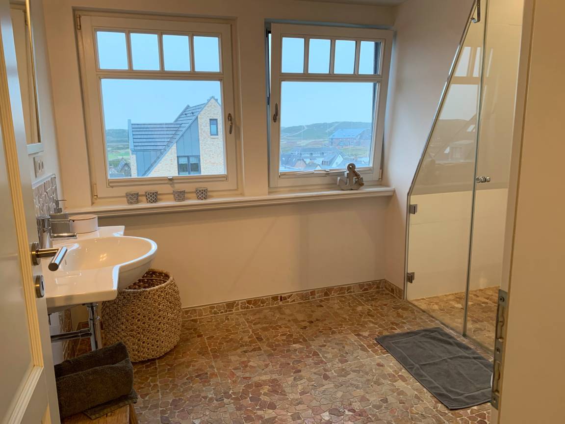 Lage: exponierte Lage auf der Düne mit direktem Meerblick von allen Fenstern auf das offene Meer und zur Wattseite