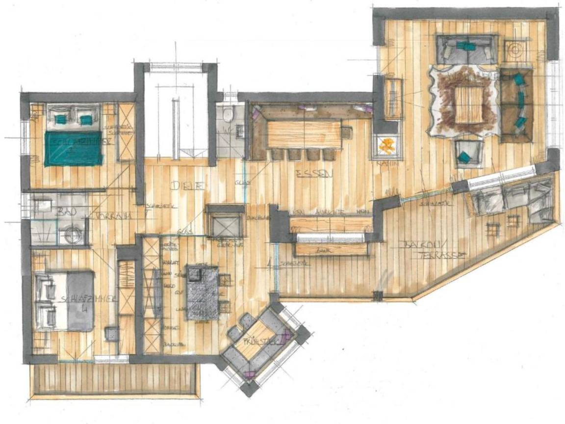 Layout : Parterre: Eingang, Schlafzimmer mit Doppelbett(Boxspring), TV(Flatscreen, smart TV) , Schlafzimmer mit Badezimmer mit Doppelbett(Boxspring), TV(Flatscreen, smart TV), Badewanne, Dusche, Waschbecken , Schlafzimmer mit Badezimmer mit Doppelbett(Boxspring), TV(Flatscreen, smart TV), Dampfdusche, Sauna, Waschbecken , Badezimmer mit Dusche, Waschbecken , Toilette mit Waschbecken, Toilette , Waschraum mit Wäschetrockner, Waschmaschine , Skiabstellraum mit Skischuhheizung , Terrasse(alleinige Nutzung, überdacht), Terrasse(alleinige Nutzung), Terrasse(alleinige Nutzung), Gartenmöbel, Pool(alleinige Nutzung, im Garten, erwärmt, geöffnet von Mai bis einschließlich Okt), Gartenlounge