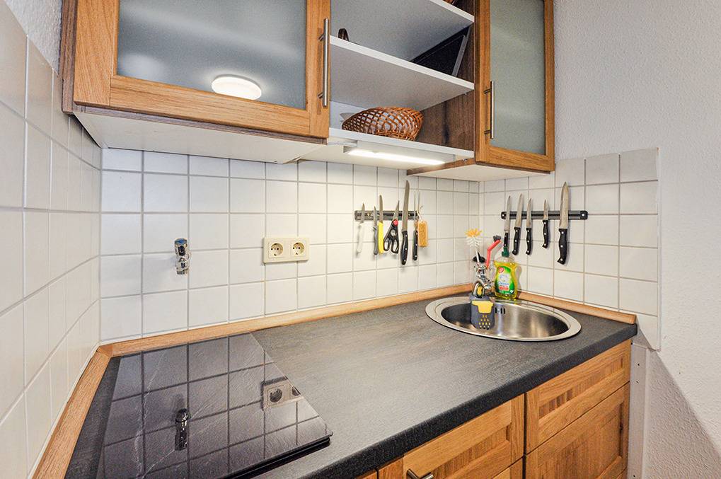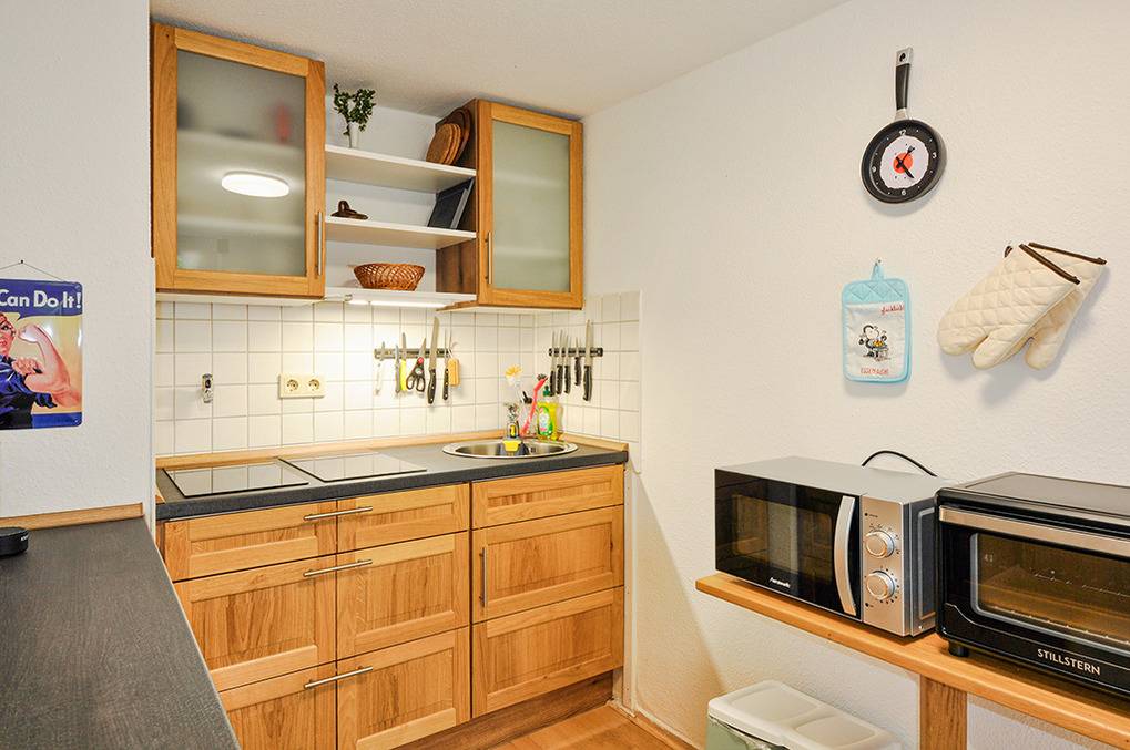 D 45.32 Wohnung 1-2 Pers.: 1 1/2-Zimmerwohnung mit 30 qm Wohnfläche, Parterre. Gemütlicher Wohn-/Schlafraum mit Doppelbett, Flachbild-Smart-TV. Kleine Küche mit Esstisch, Pantry-Küchenzeile (Ceranfeld, kleiner Backofen, Mikrowelle). Bad: Dusche, Wb, WC. Kleine Terrasse mit Sitzmöbeln.