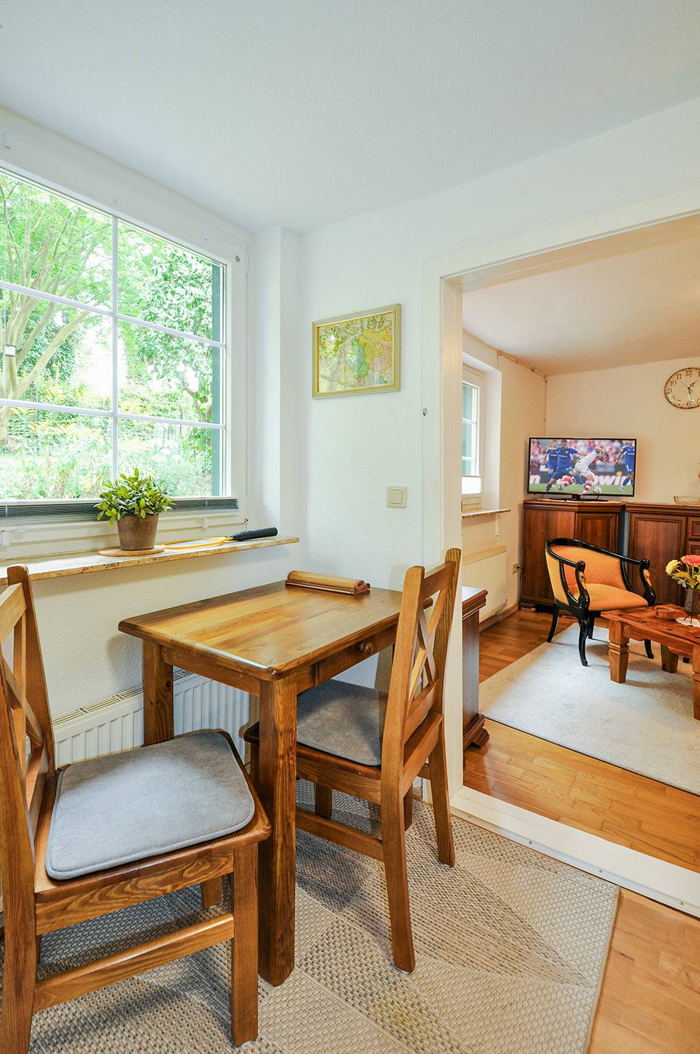Nebenkosten Endreinigung 30 € (wird bei Buchung erhoben). Bettwäsche, Handtücher vorhanden. Zusätzliche Leistungen Pkw-Stellplätze auf öffentlichem Parkplatz (kostenfrei, 30 m). Kostenloser Internetzugang über W-Lan. 2 ältere Fahrräder vorhanden (je nach Verfügbarkeit kostenfrei nutzbar). 1 E-Bike gegen Gebühr, je nach Verfügbarkeit. Kinder Babybett/Hochstuhl zusätzlich zur maximalen Personenzahl, jeweils ohne Berechnung (Bestellung). Haustier 30 €/Aufenthalt (max. 1 Hund bis 10 kg erlaubt, Anmeldung).Räume & Aufteilung