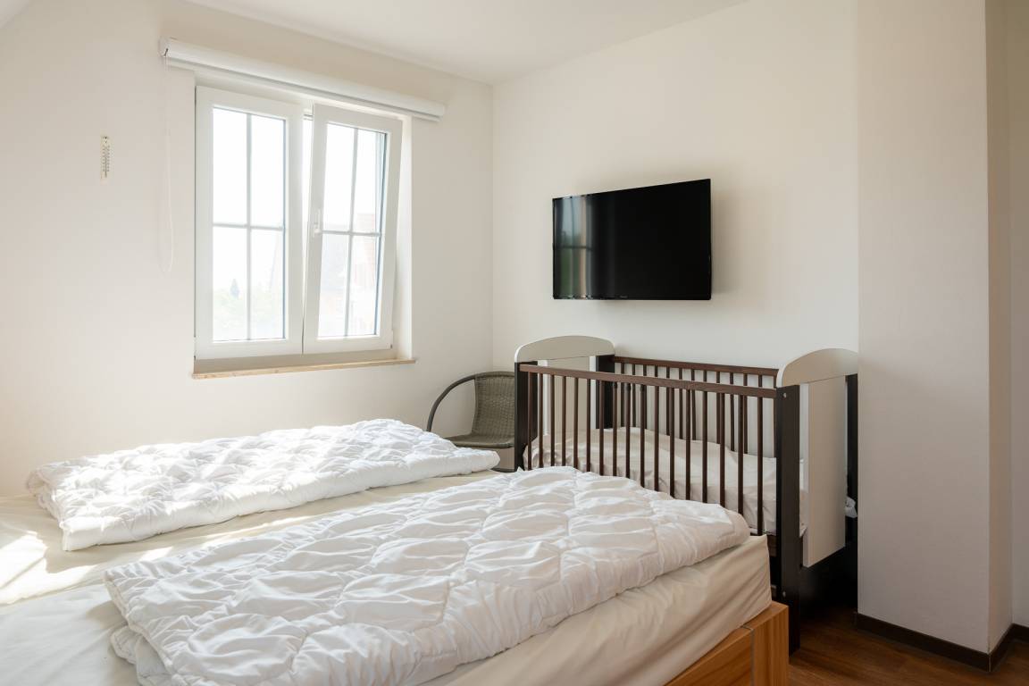 Entspannen Sie sich nach einem erlebnisreichen Tag in unserer Sauna oder genießen Sie die wohltuende Wärme unseres Whirlpools. Eine moderne Einbauküche mit Geschirrspülmaschine, Mikrowelle und Backofen steht Ihnen zur Verfügung. Im Wohnbereich erwartet Sie ein Flat-TV mit Soundbar und Radio, während im Schlafzimmer im Obergeschoss zusätzlich ein Fernseher bereitsteht.