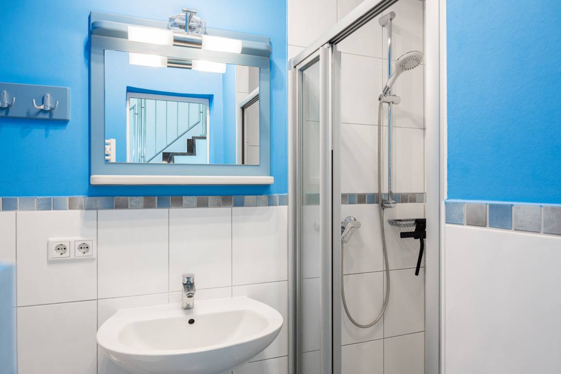 Im Erdgeschoss können Sie in einem einladenden Ambiente speisen, fernsehen oder einfach nur am großen Tisch im Wintergarten mit angrenzender Terrasse und Garten verweilen. Ein schickes Gäste-WC rundet das Angebot ab. Im ersten Stock bietet ein Schlafzimmer Platz für zwei Erwachsene in einem komfortablen Doppelbett (2mx1,40m), während im Kinderzimmer zwei Kinder in einem Etagenbett unterkommen können. Ein luxuriöses Bad mit Dusche steht ebenfalls zur Verfügung.