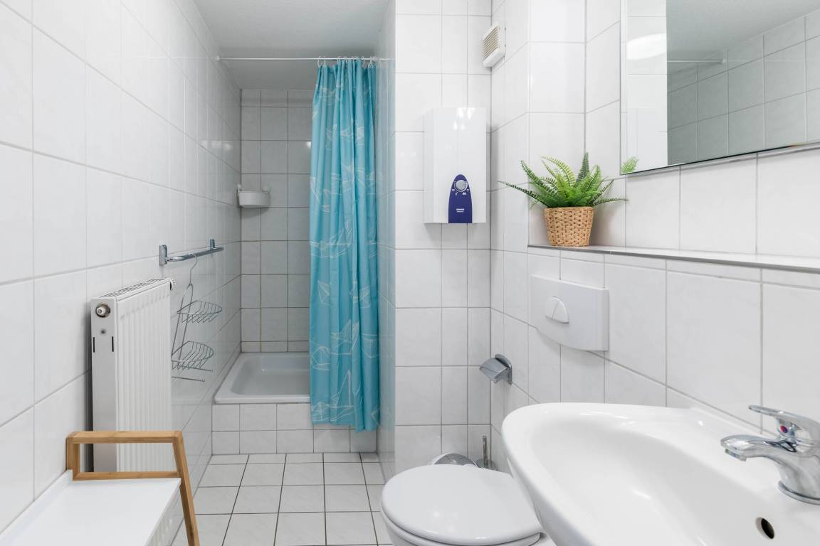 Ebenso befindet sich auf dieser Etage das Bad mit Dusche und WC.