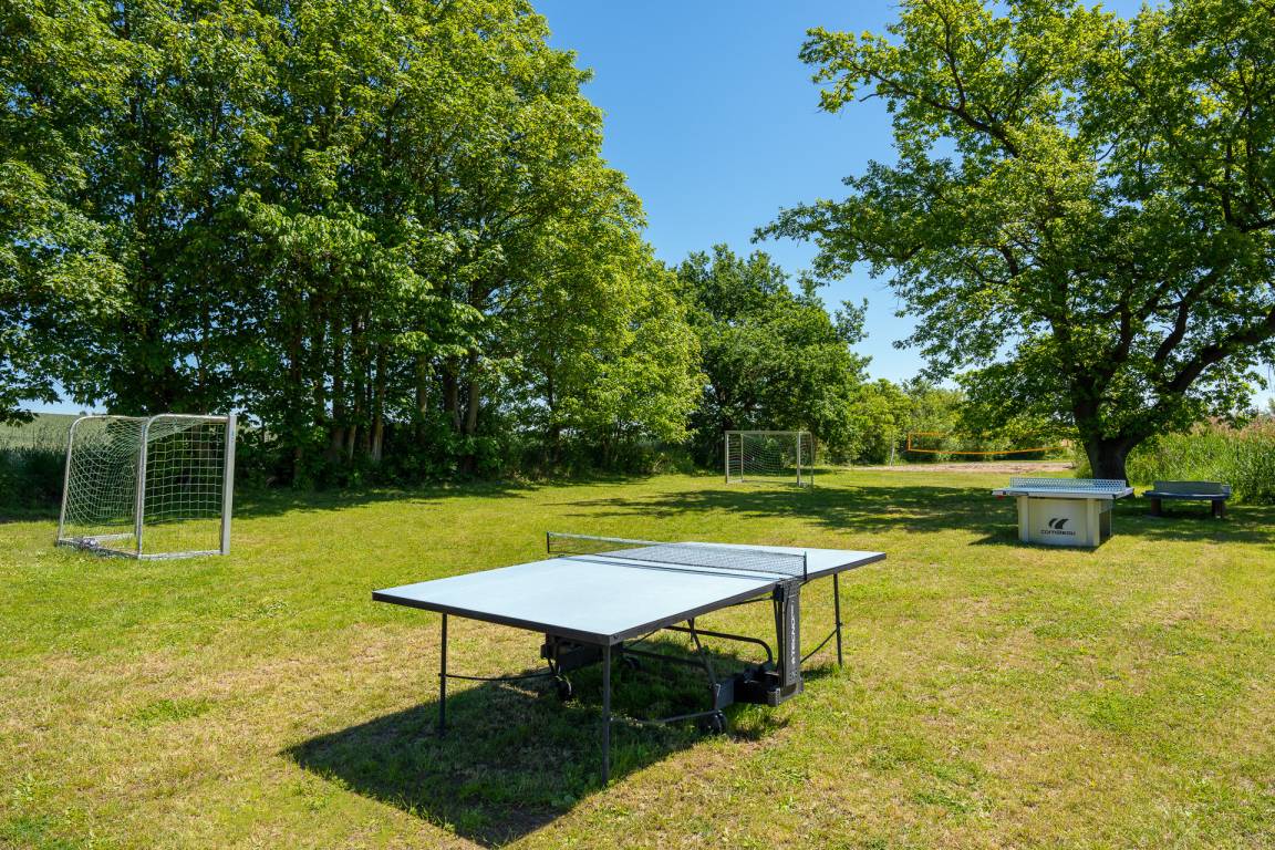 Im Wohnbereich stehen Ihnen ein Flachbildfernseher, ein DVD-Player, ein Radio sowie eine Bluetooth-Soundbar zur Verfügung. Zwei weitere Fernseher befinden sich im Obergeschoss. Das nur 150 Meter entfernte, zentrale Außenschwimmbecken kann von Mai bis September kostenfrei genutzt werden.