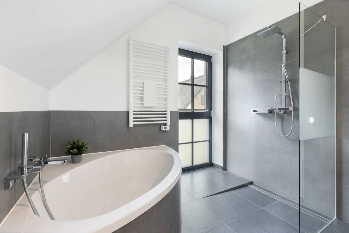 Die Bade-Lounge ist direkt vom Master-Schlafzimmer aus zu begehen und bietet mit Badewanne, WC und zwei Waschbecken alle Annehmlichkeiten. Ein zusätzliches Bad mit Dusche, WC und zwei Waschbecken lässt auch bei voller Belegung des Hauses keine Engpässe entstehen.