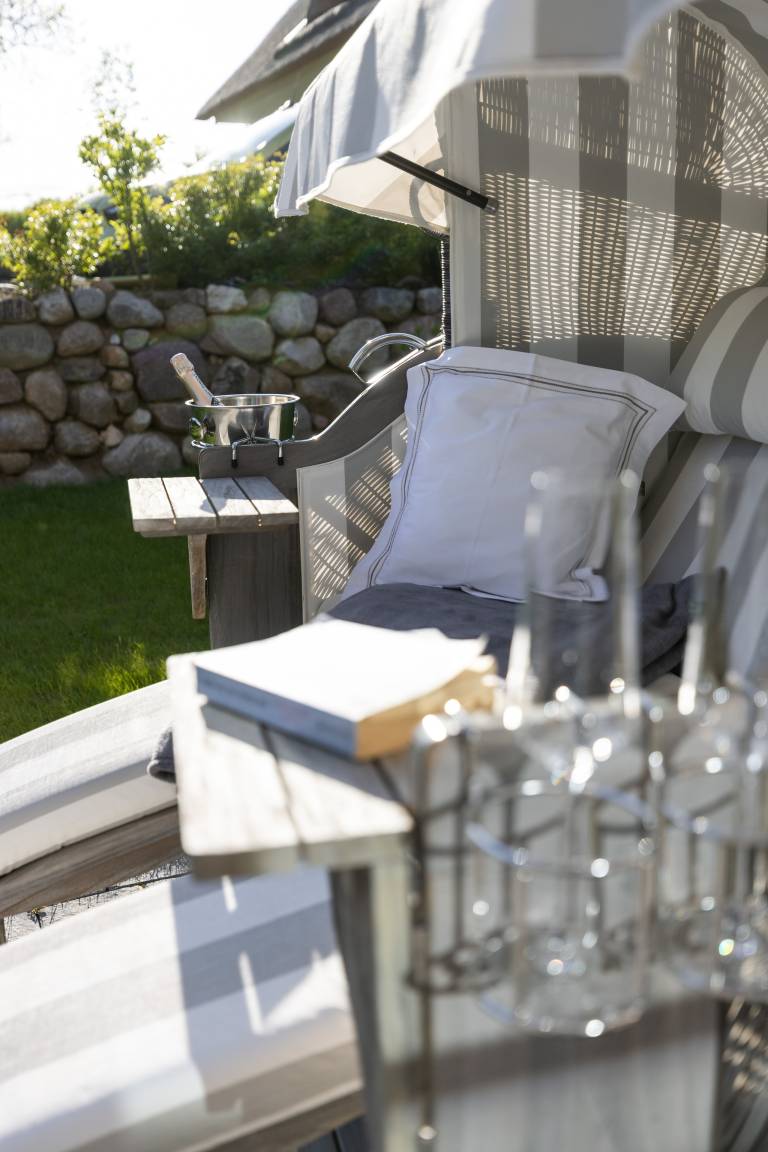 Zum Haus gehört ein eigener Garten mit Terrasse, der mit Gartenmöbeln, einem Strandkorb und einem Sonnenschirm ausgestattet ist - ideal für den Urlaub mit Kindern und/oder Hund! Wir bitten zu berücksichtigen, dass wir einen zweiten Hund nur auf Nachfrage erlauben!