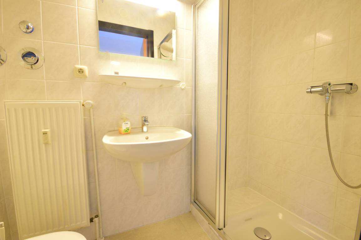 Ein kleines Bad mit Dusche, WC und Waschbecken befindet sich ebenfalls im Untergeschoss.