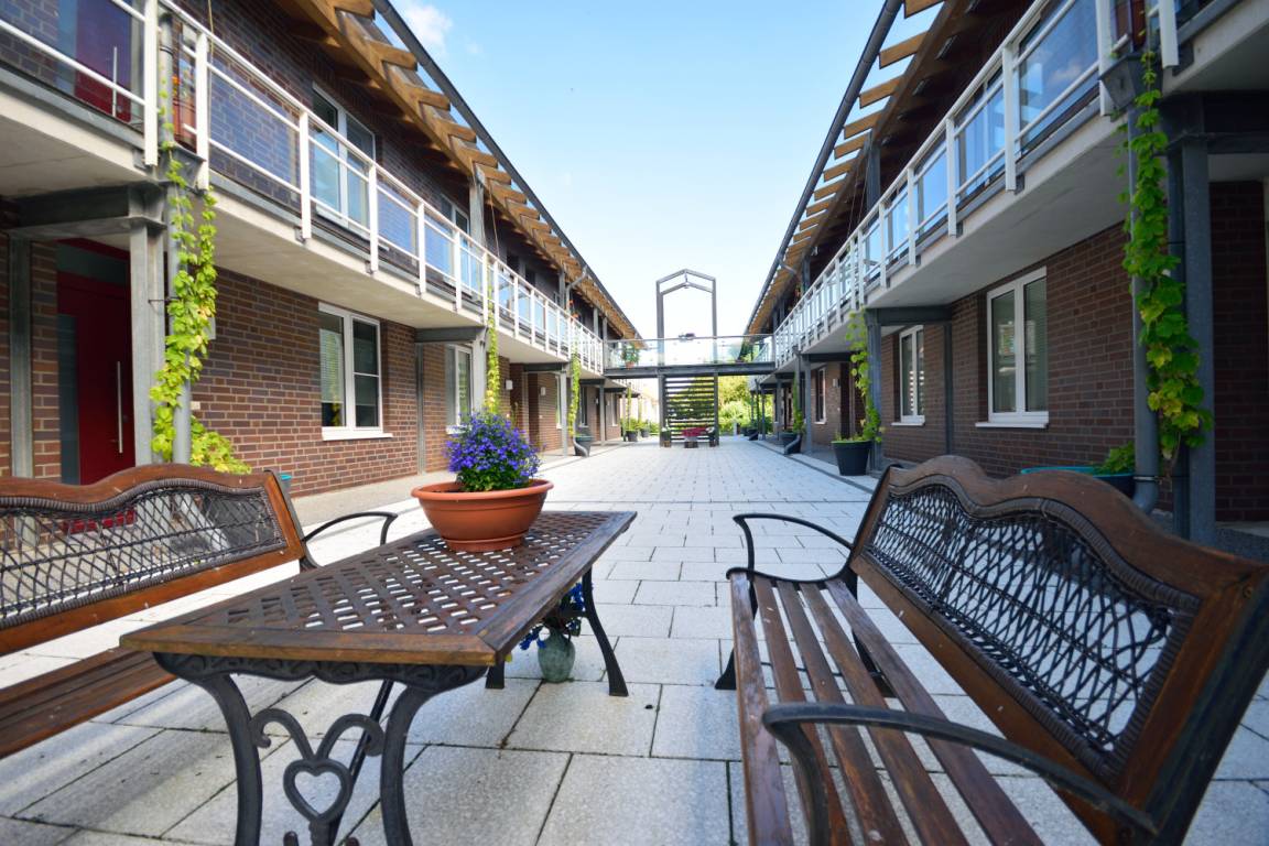Das große Grundstück, welches von Erdbeerfeldern, einem Vogelschutzgebiet und einem Golfplatz umgeben ist, bietet Ihnen einen hohen Komfort. In der hauseigenen Tiefgarage können Sie Ihren PKW und Ihre Fahrräder kostenfrei und sicher parken. Ein Tischtennisraum steht Ihnen ebenfalls zur kostenlosen Nutzung bereit. Im Innenhof und auf der Wiese stehen Ihnen viele Sitzgelegenheiten, ein großer Spielplatz aus Holz, Grillplätze, ein Saunahaus, ein Fischputzraum und ein Waschmaschinenraum mit Trocknern zur Verfügung.