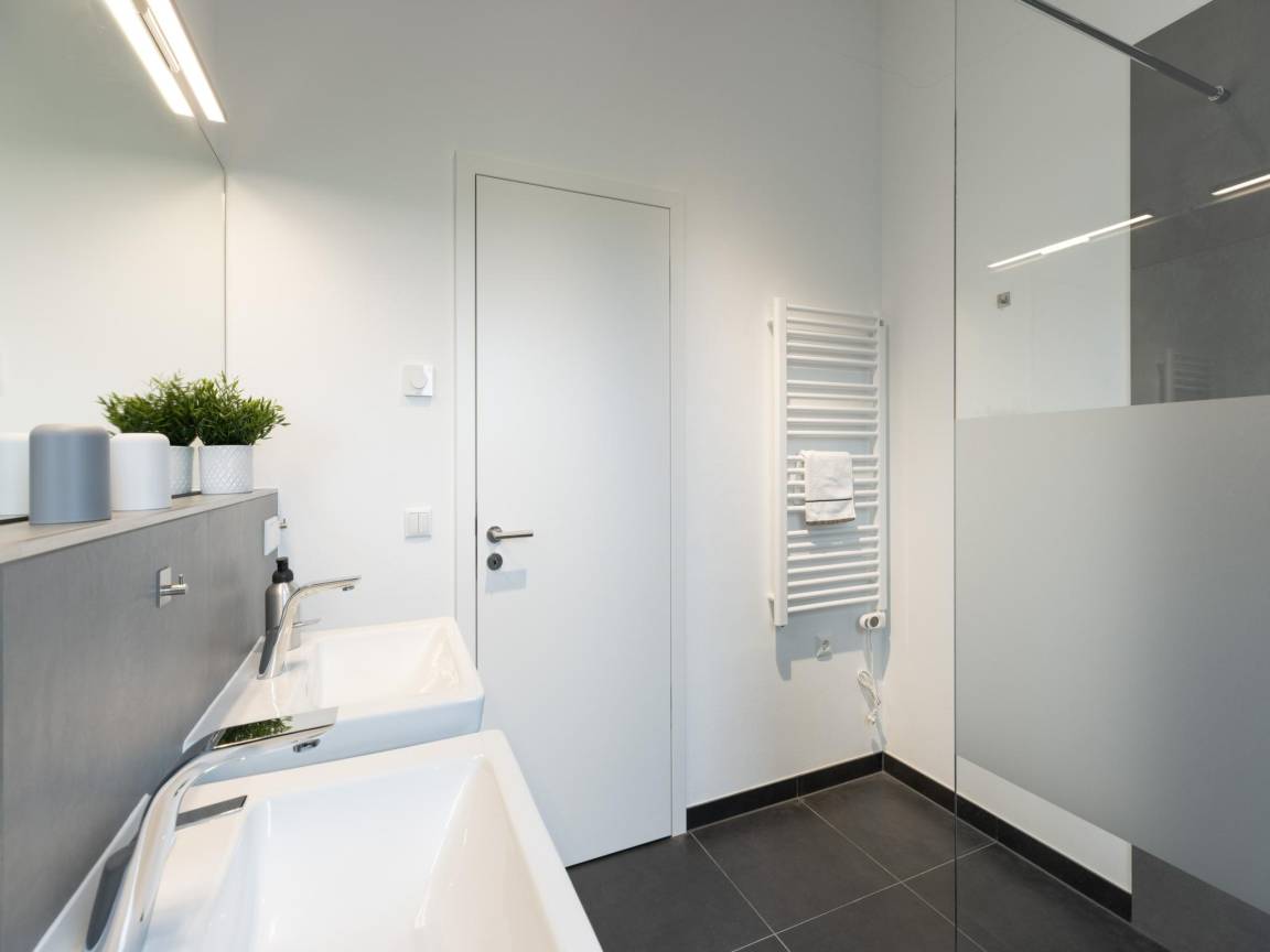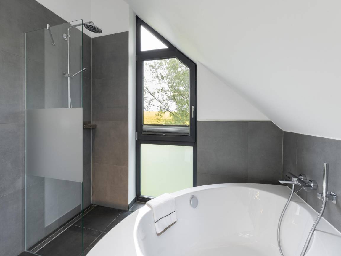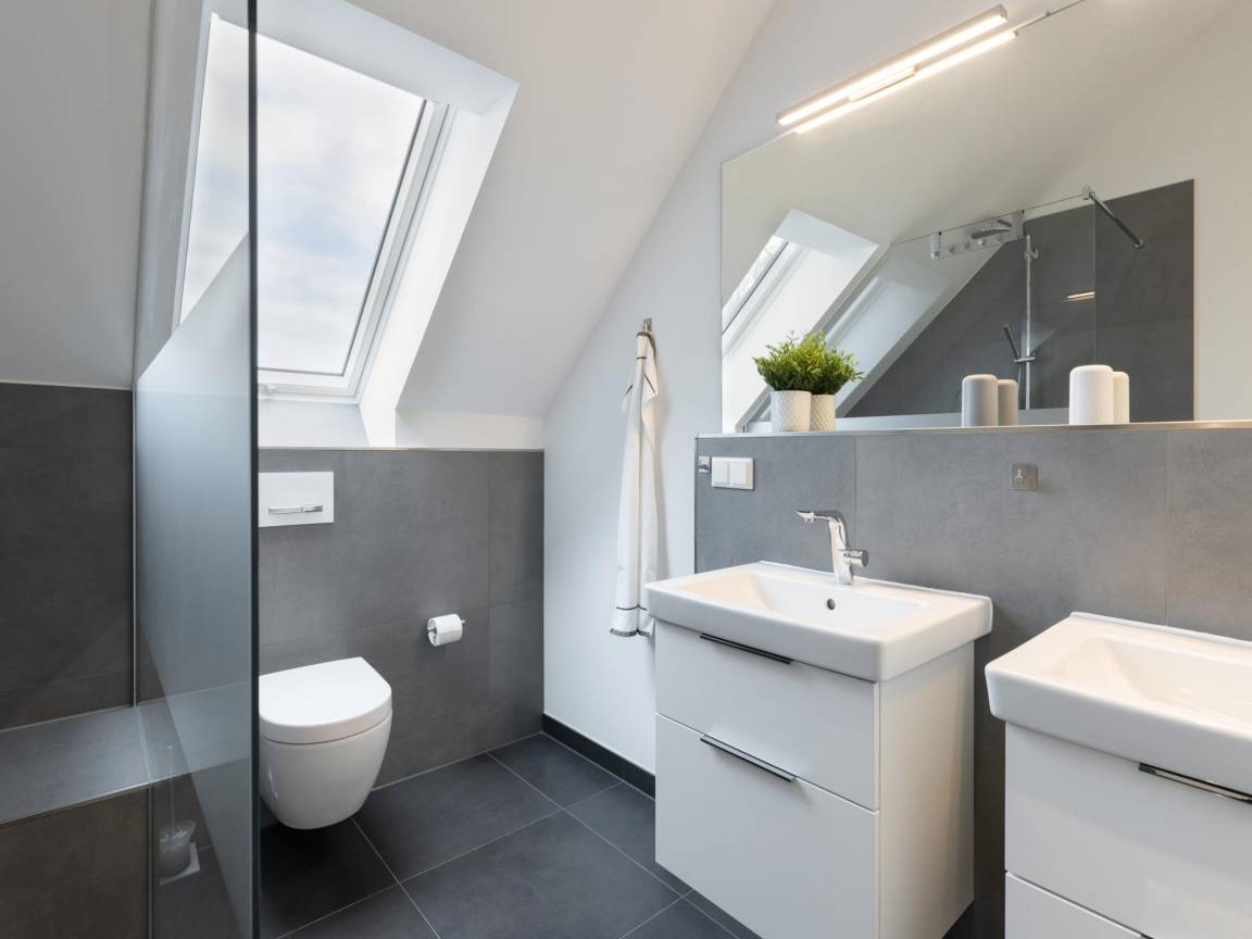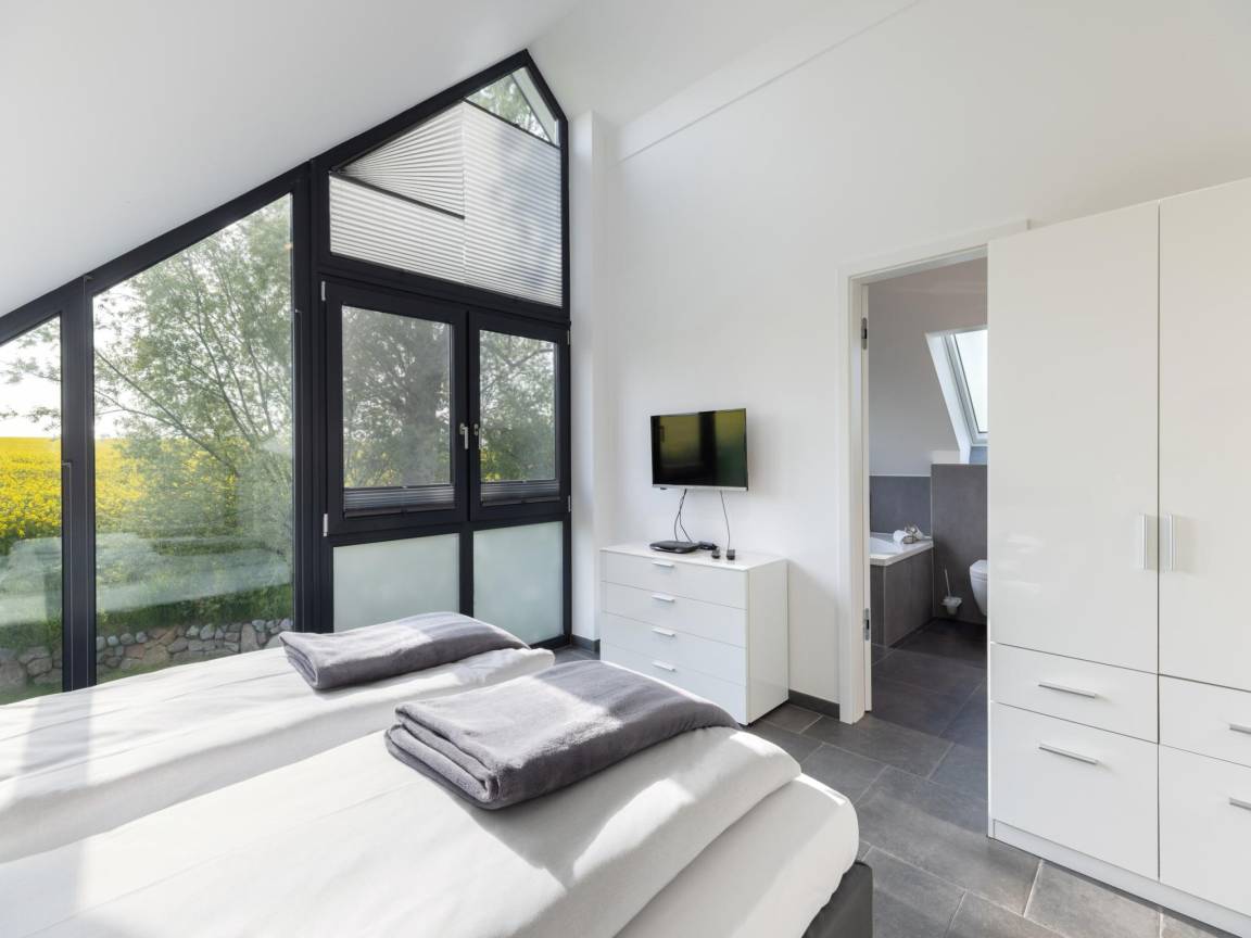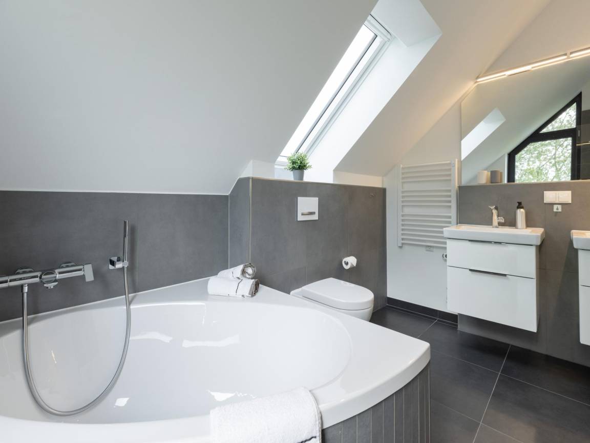 In der 1. Etage: 3x Schlafzimmer mit Doppelbett king size, TV , Badezimmer mit Waschbecken, Dusche, Toilette , Badezimmer(Erreichbar über ein Durchgangs(schlaf)zimmer) mit Badewanne, Dusche, Waschbecken, Toilette , Flur