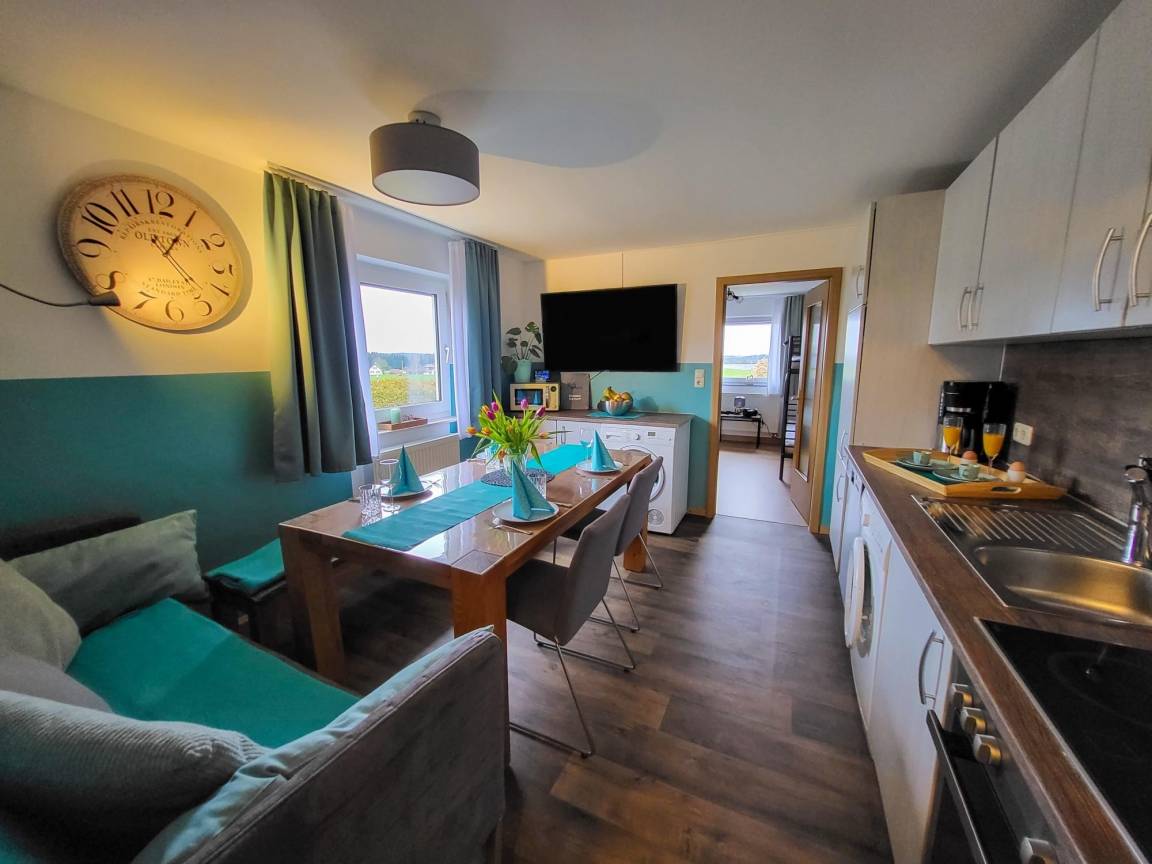 Hier genießen Sie erholsame Ruhe, eine herrliche Aussicht auf den Hohen Peißenberg sowie die umliegenden Felder. Auch ohne Auto sind alle Geschäfte des täglichen Bedarfs mit dem Rad oder zu Fuß erreichbar. Bäcker, Supermarkt, Metzger, Café, Restaurants. Der Badesee liegt nur wenige Minuten entfernt. Direkt gegenüber starten die schönsten Spazier- und Farradwege ins Umland. Freunde des Langlaufsports sind bei uns ebenfalls bestens aufgehoben. Der Einstieg in die Loipe befindet sich ebenfalls im Feld gegenüber. Die komplett neu renovierte Wohnung bietet mit Ihrer Größe von ca. 50m² genug Platz für bis zu 4 Erwachsene und 1 Kind. 1 Doppelbett, 1 Einzelbett, 1 Etagenbett. Sie ist ausgestattet mit Kabel-TV, Spülmaschine, Mikrowelle, Waschmaschine, Trockner, Holzofen für gemütliche Abende. Für die ganz Kleinen können ein Hochstuhl, ein Kinderreisebett inkl. Bettwäsche, Babyphone und Rausfallschutz gestellt werden. In unserem großen Garten lassen sich viele herrliche Sonnenstunden genießen, währenddessen die Kinder, mit dem Streichelzoo beschäftigt sind oder ausgiebig mit diversen Spielmöglichkeiten auf dem eingezäunten Grundstück spielen können. Bettwäsche und Handtücher sind selbstverständlich inklusive. Hunde gerne nach Absprache für 5€ pro Tag zzgl. 25 € Endreinigung am Ende des Aufenthaltes.