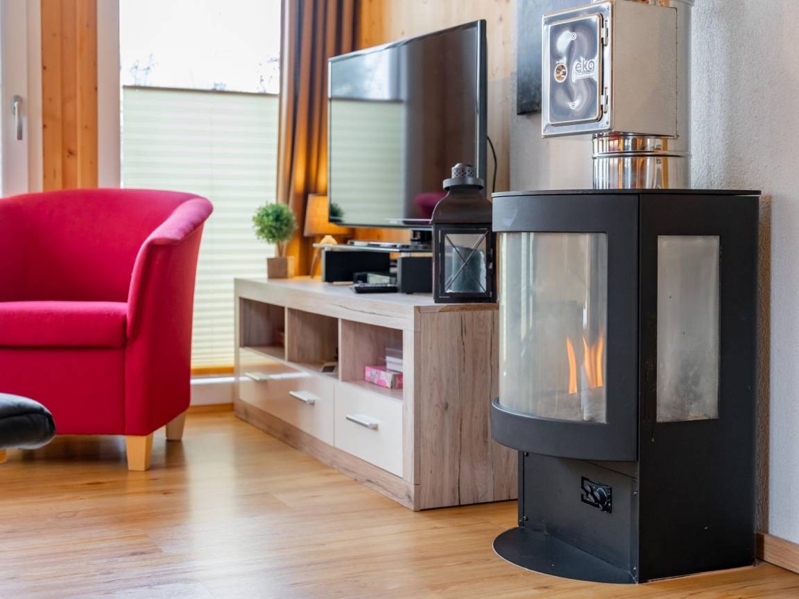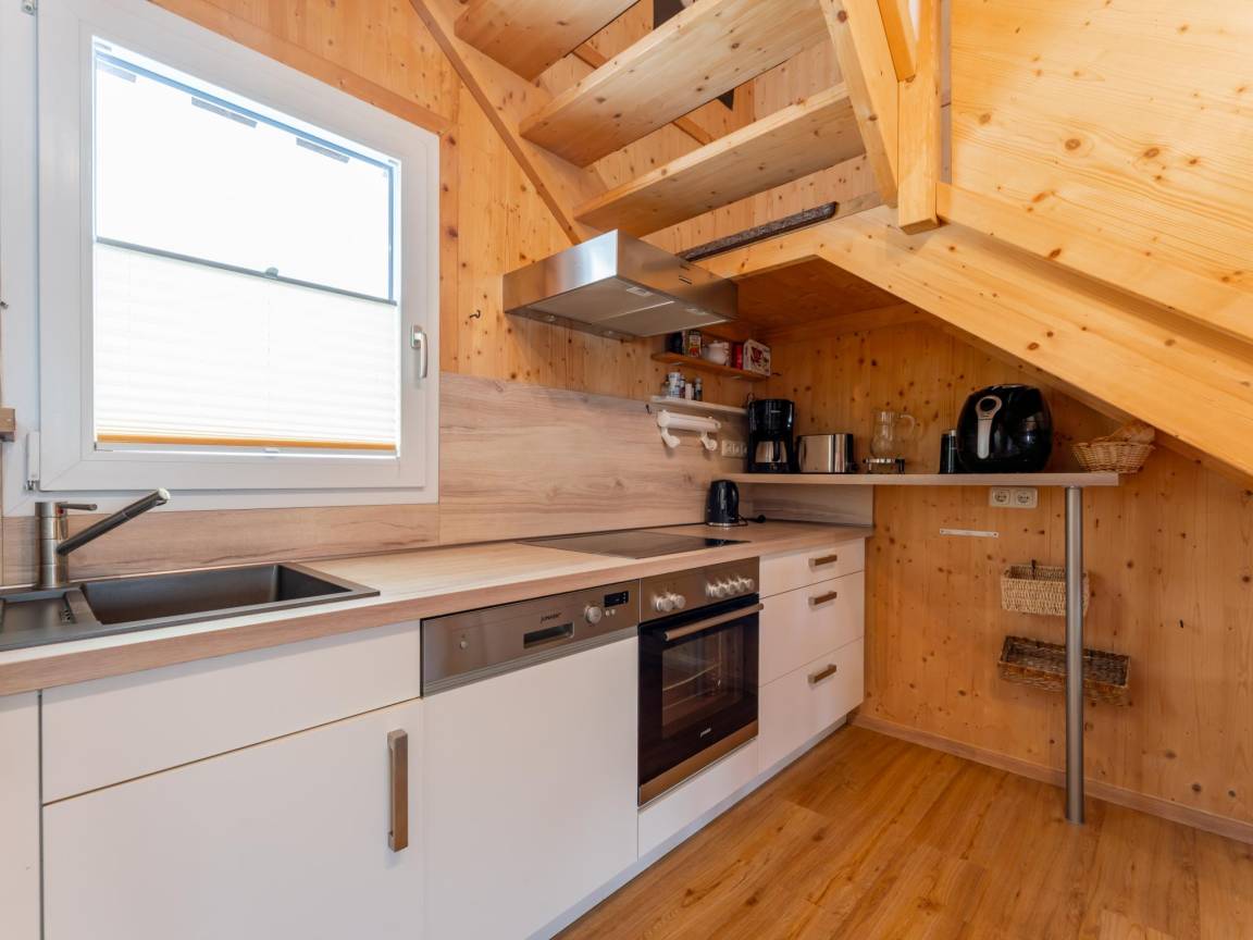 Layout : Parterre(privater Eingang): Eingang mit Waschmaschine , offene Küche mit Kochplatte(4 Kochplatten, Ceranfeld), Wasserkocher, Toaster, Dunstabzugshaube, Kaffeemaschine(Filter), Mikrowelle, Geschirrspüler, Kühl-/Gefrierkombination , Wohn/Esszimmer mit TV(Flatscreen, smart TV), Esstisch(5 Personen), Ofen(Holz), Sitzecke, DVD-Player, 1x Hochstuhl , Toilette mit Waschbecken, Toilette , Wintergarten, Terrasse