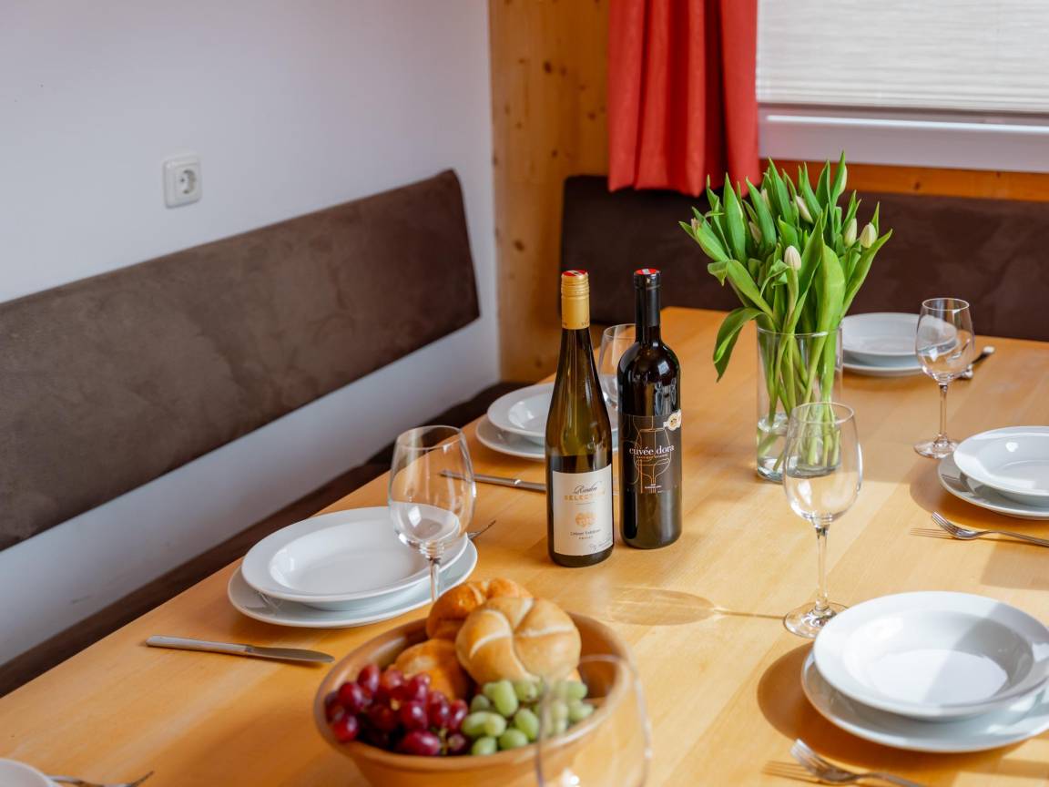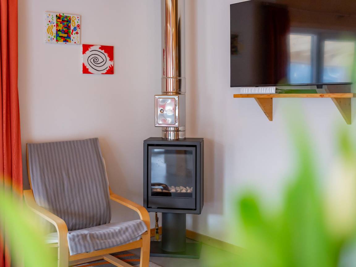 Layout : Parterre(privater Eingang): Eingang mit Waschmaschine, Skischuhheizung , offene Küche mit Kochplatte(4 Kochplatten, Ceranfeld), Wasserkocher, Toaster, Dunstabzugshaube, Kaffeemaschine(Filter), Backofen, Mikrowelle, Geschirrspüler, Kühl-/Gefrierkombination , Wohn/Esszimmer mit TV(Flatscreen, smart TV), Esstisch(8 Personen), Dekokamin, Sitzecke, CD-Spieler, Stereoanlage, Gesellschaftsspiele , Badezimmer mit Dusche, Infrarotsauna, Waschbecken, Toilette , Heizung(Fußbodenheizung), 1x Kinderbett (inklusive Bettwäsche)(gegen Gebühr), 1x Hochstuhl