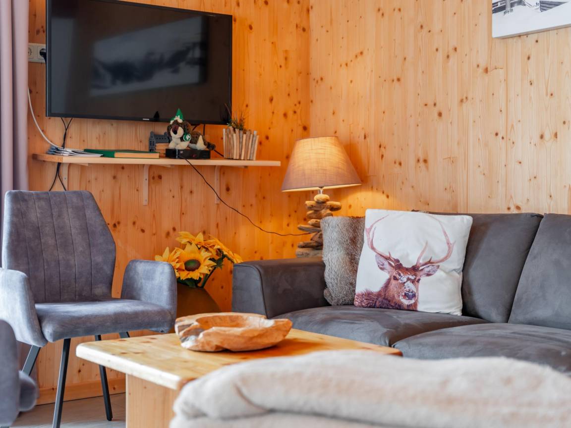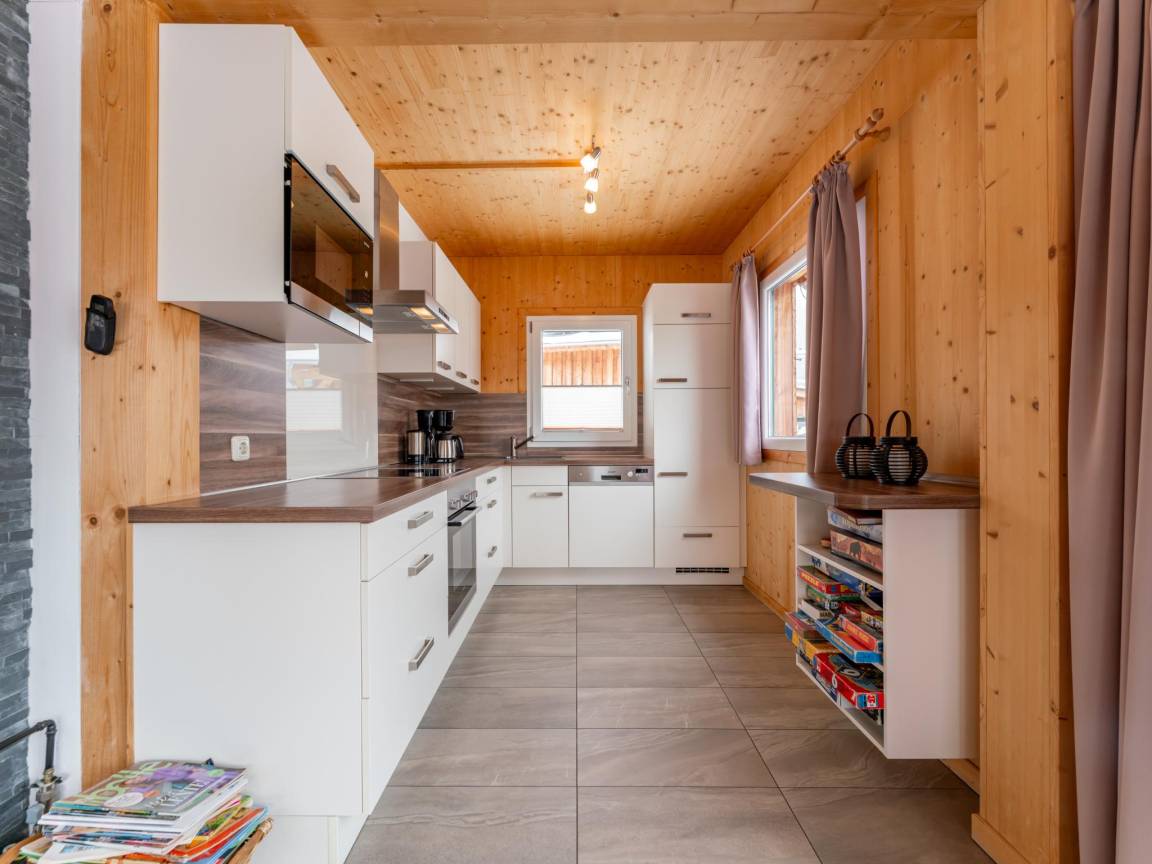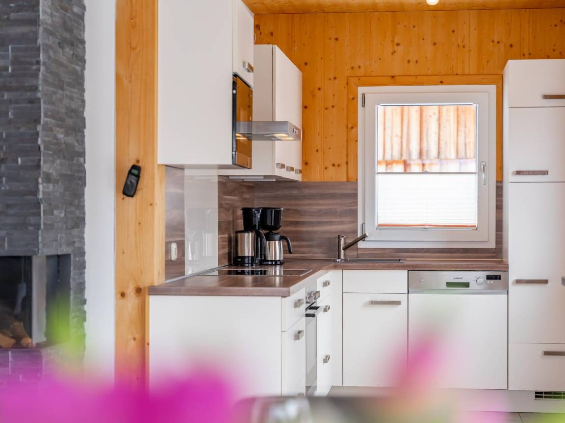 Layout : Parterre(privater Eingang): Eingang mit Waschmaschine, Skischuhheizung , Wohnzimmer mit TV(Flatscreen, smart TV), Esstisch(8 Personen), Dekokamin, Sitzecke, Radio, 1x Hochstuhl , offene Küche mit Kochplatte(4 Kochplatten, Ceranfeld), Wasserkocher, Dunstabzugshaube, Kaffeemaschine(Filter), Backofen, Mikrowelle, Geschirrspüler, Kühl-/Gefrierkombination , Badezimmer mit Dusche(Regen), Waschbecken, Toilette