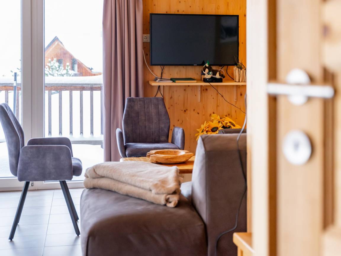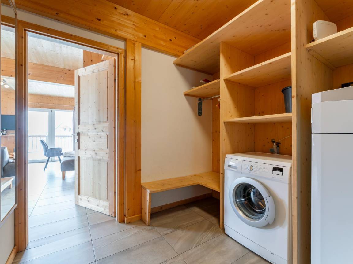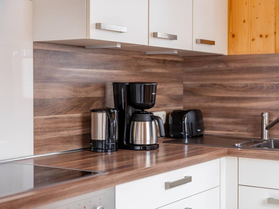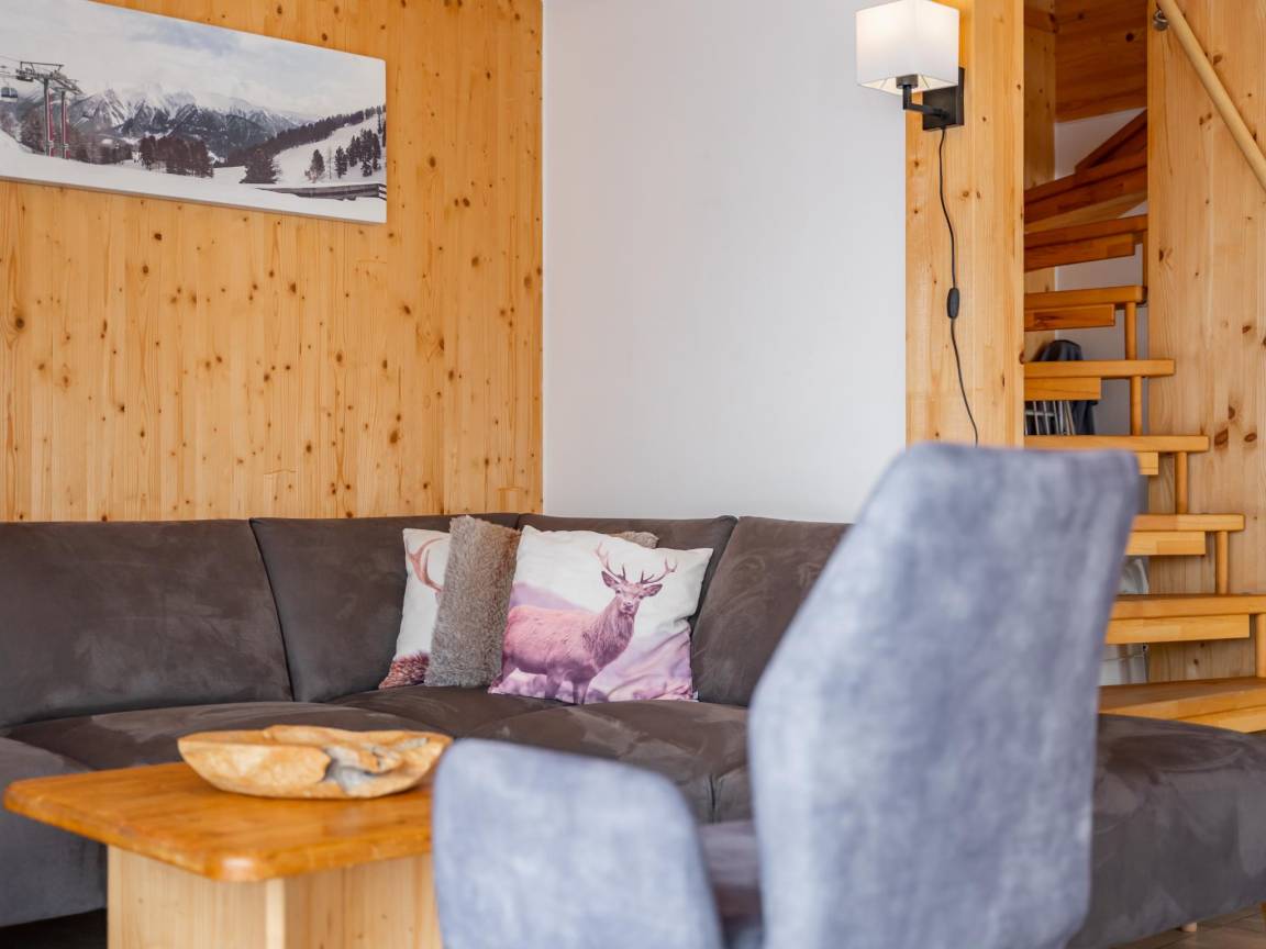 Layout : Parterre(privater Eingang): Eingang mit Waschmaschine, Skischuhheizung , Wohnzimmer mit TV(Flatscreen, smart TV), Esstisch(8 Personen), Dekokamin, Sitzecke, Radio, 1x Hochstuhl , offene Küche mit Kochplatte(4 Kochplatten, Ceranfeld), Wasserkocher, Dunstabzugshaube, Kaffeemaschine(Filter), Backofen, Mikrowelle, Geschirrspüler, Kühl-/Gefrierkombination , Badezimmer mit Dusche(Regen), Waschbecken, Toilette