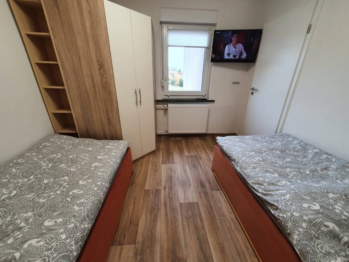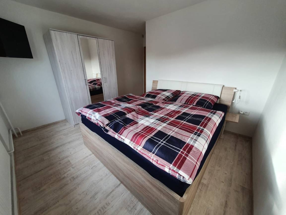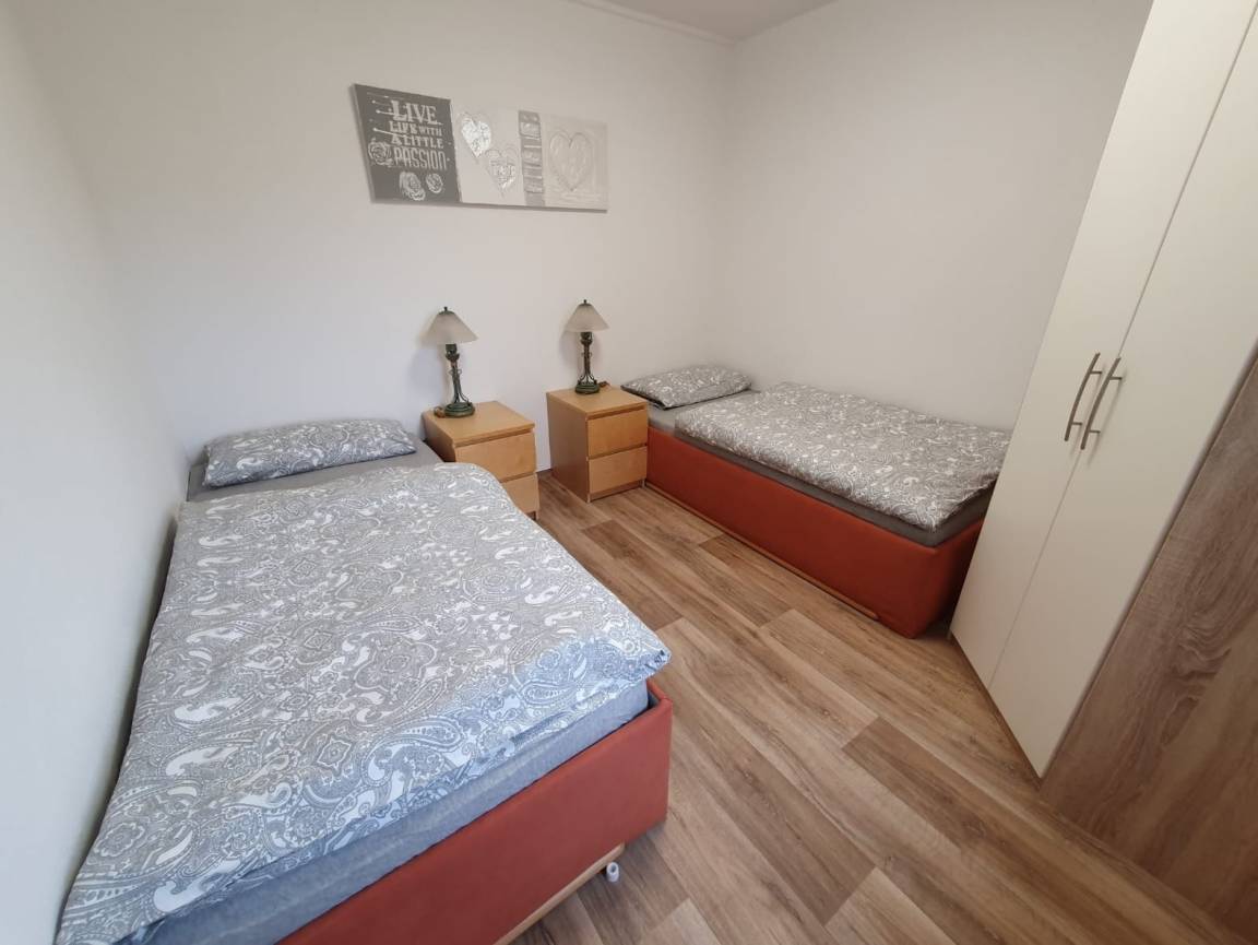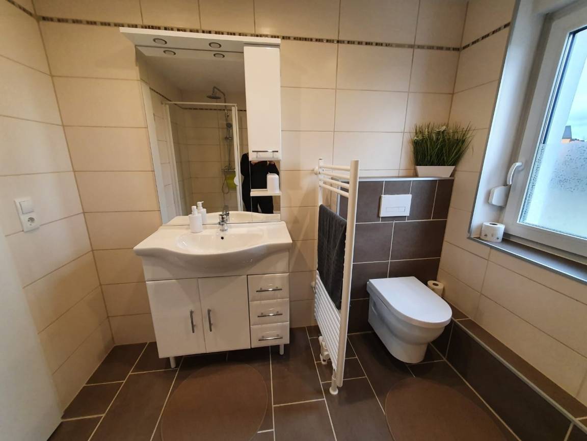 Große Ferienwohnung, sehr modern ausgestattet, 2 Schlafzimmer mit Einzelbetten, oder als Doppelbett stellbar, Küche mit allen technischen Geräten ausgestattet, Geschirr und Besteck, großes Wohnzimmer mit Schlafcouch, TV, Essbereich mit Esstisch, in jedem Schlafzimmer befindet sich ein TV -Fachbildschirm. Internet ist ebenso vorhanden. Bad mit Dusche, Badewanne, Toilette. Extra Gäste WC vorhanden. Balkon für Raucher vorhanden. Parkplatz vor dem Haus, separater Stellplatz oder parken vor dem Haus möglich. Grillen ebenso möglich.