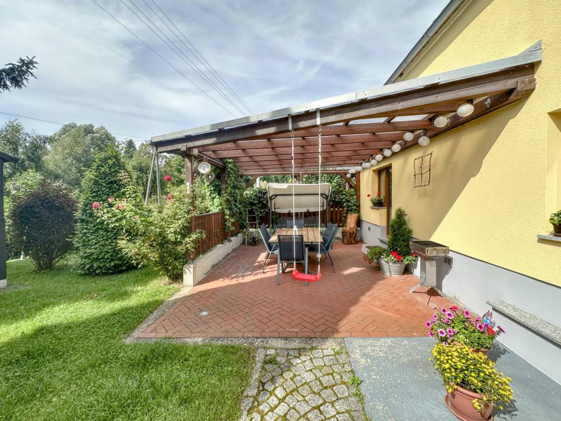 Heizung(Zentral, pellets), Terrasse(überdacht, 12 m²), Garten(teilweise umzäunt, 40 m²), BBQ(Holzkohle), 1x Parkplatz, Trampolin, Wickelauflage, Sandkasten, Spielgeräte, Rutsche, Fußballtor, 1x Kinderbett (ohne Bettwäsche), 1x Hochstuhl, Treppenschutzgitter, Gesellschaftsspiele, Spielzeug, Schaukel