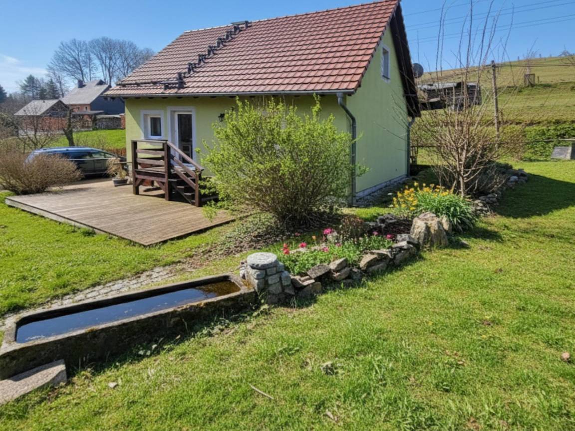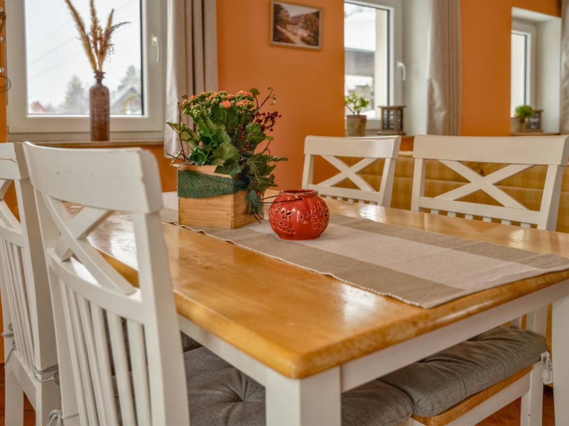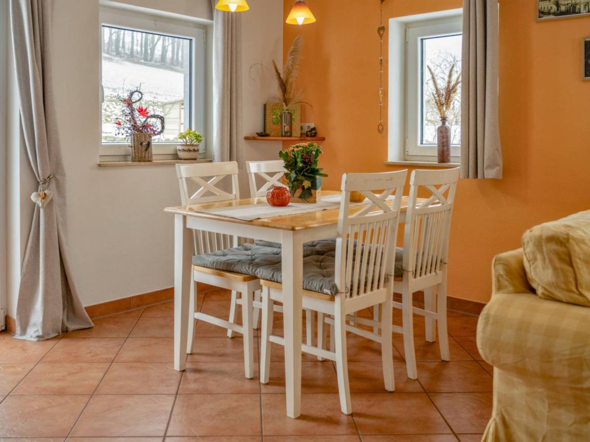 Hausbeschreibung : Stilvolles Ferienhaus in Lohsdorf einem Ortsteil von Hohnstein in der Sächsischen Schweiz. Das Haus ist modern, hell und komfortabel eingerichtet. Ein Holzofen im Wohnbereich sorgt für eine gemütliche Stimmung und die große Terrasse begeistert mit weitem Blick über Wiesen und Felder. Im gepflegten Garten lässt sich die Ruhe der Natur in vollen Zügen genießen, hier können Kinder ausgiebig toben. Dank der ruhigen Lage gewinnen Sie wunderbar Abstand vom Alltag, ohne auf Komfort verzichten zu müssen