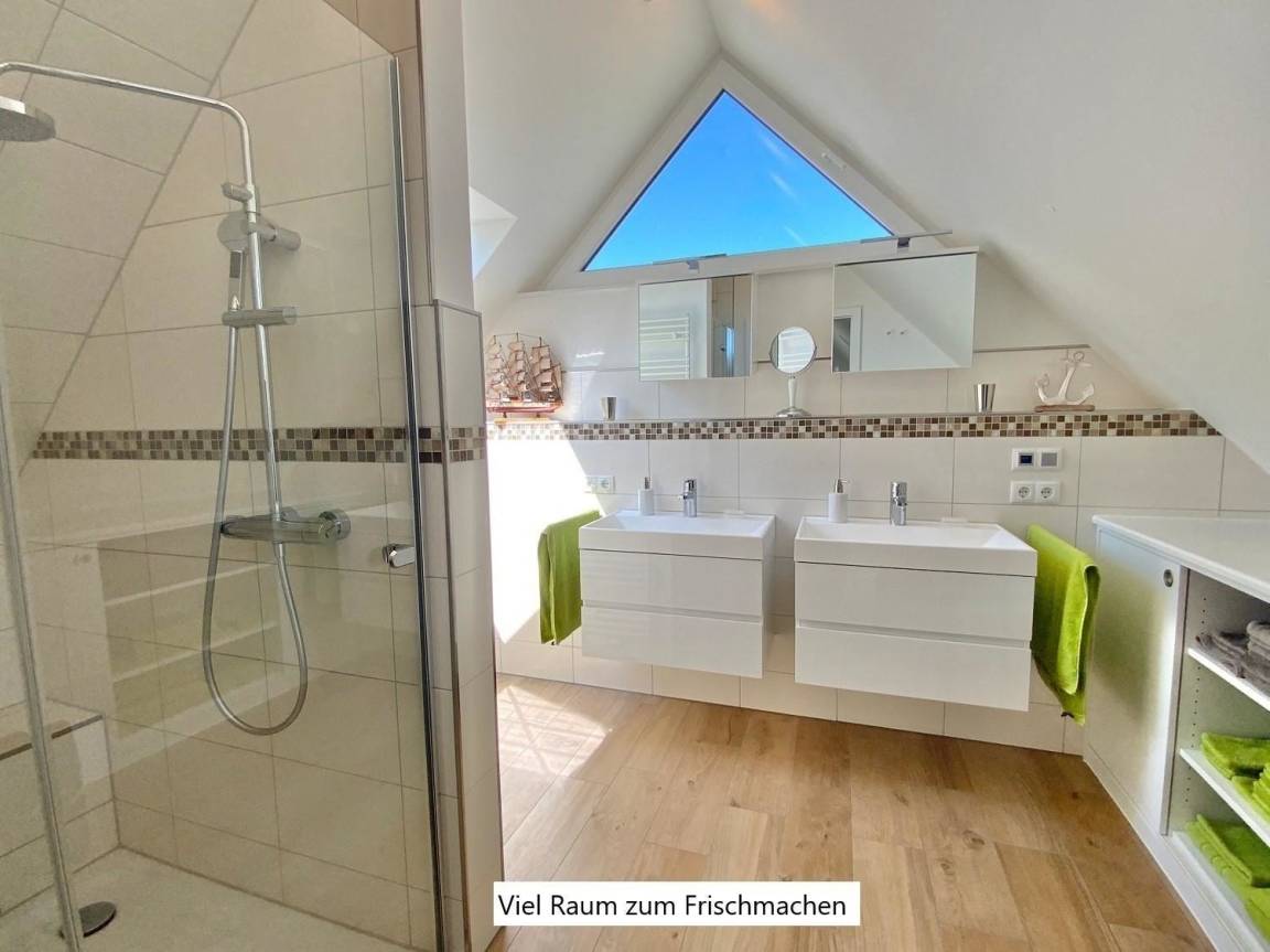 Diese moderne Ferienwohnung bietet ihren Gästen eine durchdachte und komfortable Ausstattung. Mit einem großzügigen Schlafzimmer, das mit einem komfortablen Doppelbett ausgestattet ist, und einem Badezimmer mit bodengleicher Dusche, wird der Aufenthalt zu einem besonderen Erlebnis. Die offene Küche überzeugt mit modernen Geräten wie einem Elektro-/Gasherd, Backofen, Geschirrspüler, Mikrowelle und Kühlschrank, ergänzt durch eine Kaffeemaschine und Espressomaschine. Für zusätzlichen Komfort sorgen WLAN, Fußbodenheizung und ein Gäste-WC.