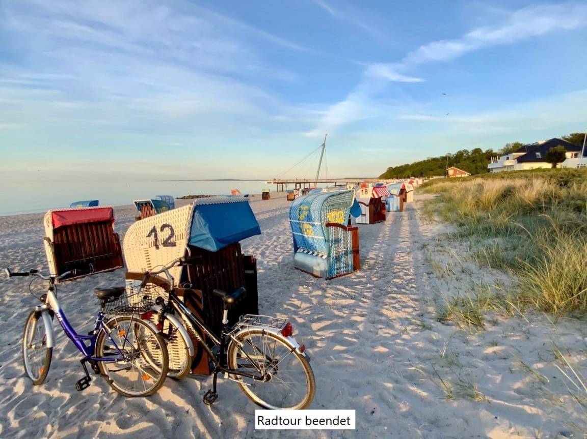 Die Ferienwohnung bietet einen einladenden Balkon, der zum Entspannen einlädt. Ausgestattet mit Gartenliegen und Liegestühlen, ist der Außenbereich perfekt, um die Sonne zu genießen. Zudem stehen Fahrräder bereit, um die Umgebung aktiv zu erkunden. Diese private Oase schafft einen idealen Rückzugsort für erholsame Stunden im Freien.