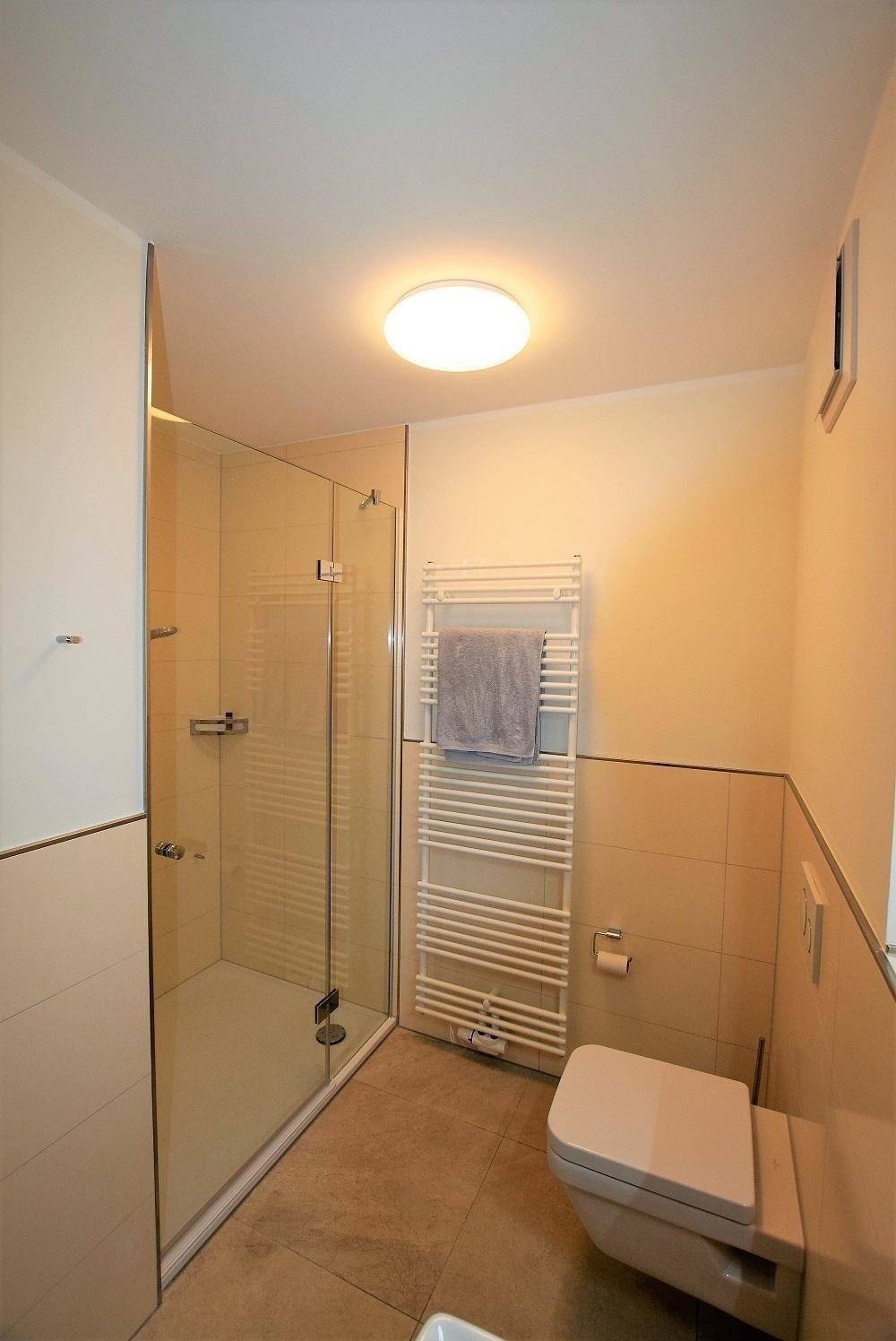 Die traumhafte Ferienwohnung „Jakobsmuschel" bietet Platz für bis zu vier Gäste und überzeugt durch ihre moderne Ausstattung auf 50 Quadratmetern. Ein großes Wohn- und Esszimmer mit offener Küche sorgt für einen einladenden Aufenthalt. Hier finden sich ein bequemes Sofa, ein Esstisch für vier Personen sowie eine voll ausgestattete Küche mit Spülmaschine, Waschmaschine, Induktionsherd und weiteren elektrischen Geräten. Das Schlafzimmer ist mit einem Doppelbett ausgestattet, während ein Schlafsofa im Wohnzimmer zusätzlichen Platz bietet. Das moderne Badezimmer besticht durch eine Regendusche und Fußbodenheizung für zusätzlichen Komfort. Ein gemeinschaftlicher Wasch- und Trockenraum im Untergeschoss ist für die Nutzung der Gäste zugänglich. WLAN ist ebenfalls vorhanden.