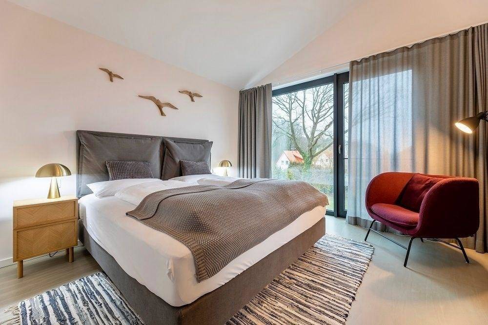 Die Ferienwohnung „Küstenliebe" befindet sich in einer modernen Ferienanlage nur 750 Meter vom Sandstrand entfernt, der bequem zu Fuß oder mit dem Fahrrad erreichbar ist. In unmittelbarer Nähe laden Restaurants, Cafés und Einkaufsmöglichkeiten zum Verweilen ein. Für Aktivurlauber stehen eine Segel- und Surfschule sowie ein Golfplatz in wenigen Minuten Entfernung zur Verfügung. Die Lage ist ideal für entspannte Tage am Strand oder erlebnisreiche Ausflüge in die Umgebung. Die Anreise zur Wohnung erfolgt über gut ausgebaute Straßen, ein eigener Parkplatz ist direkt vor der Tür vorhanden. Die Umgebung der Ferienanlage ist naturnah gestaltet, angrenzend befindet sich ein Wald- und Schutzgebiet, das Ruhe und Erholung verspricht. „Küstenliebe" ist somit ein perfekter Rückzugsort für Familien und Hundebesitzer, die Wert auf Stil und Komfort legen.