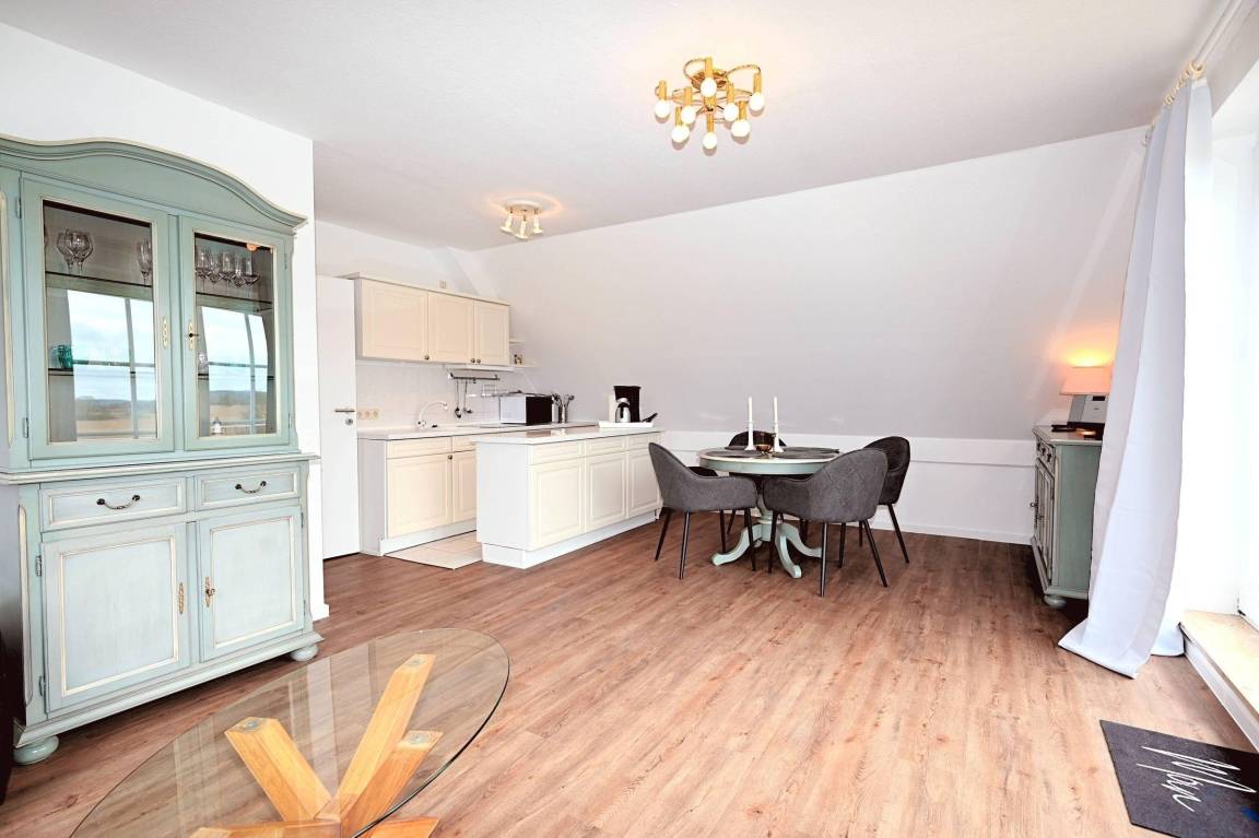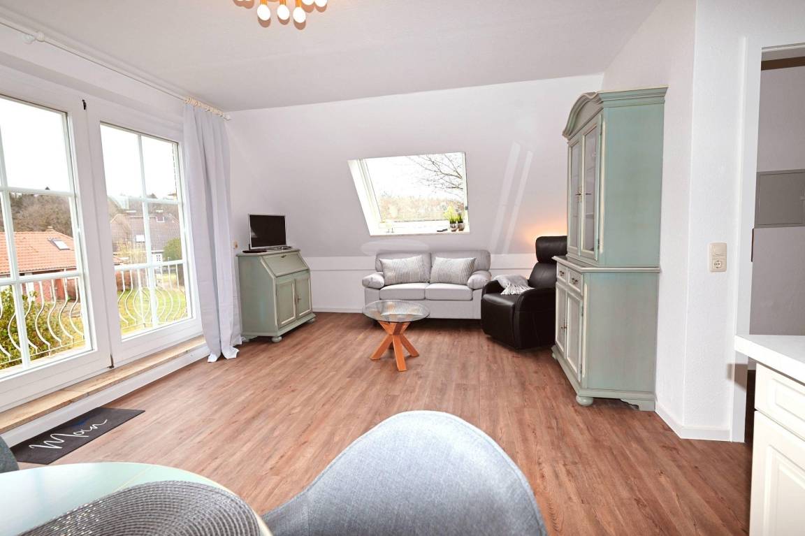 Die 3-Zimmer-Ferienwohnung bietet Platz für bis zu 4 Personen und besticht durch ihre lichtdurchfluteten Räume und hochwertige Ausstattung. Der offene Wohn- und Essbereich mit integrierter Küche ist ideal für gesellige Abende und verfügt über moderne Geräte wie Backofen, Mikrowelle und Kühlschrank mit Gefrierfach. Gemütliche Sofa- und Sesselgruppen laden zum Entspannen ein. Die beiden Schlafzimmer sind mit komfortablen Doppelbetten, geräumigen Kleiderschränken und Verdunkelungsgardinen ausgestattet, die erholsames Ausschlafen ermöglichen.