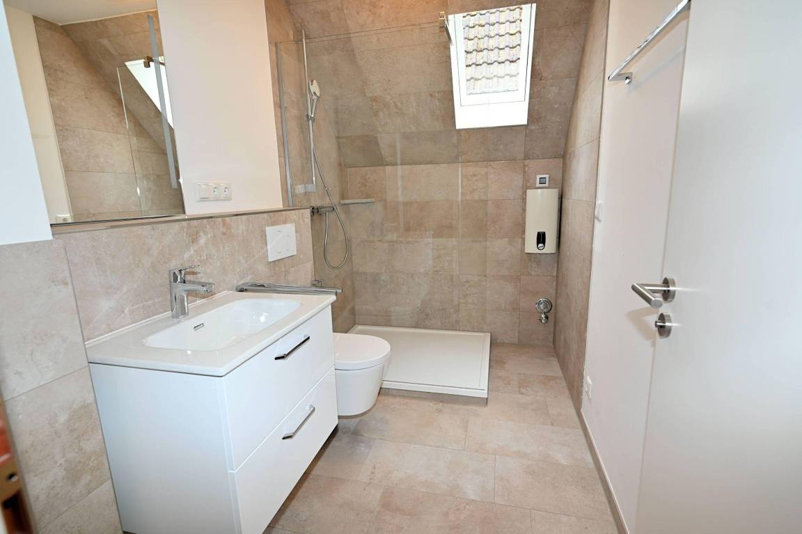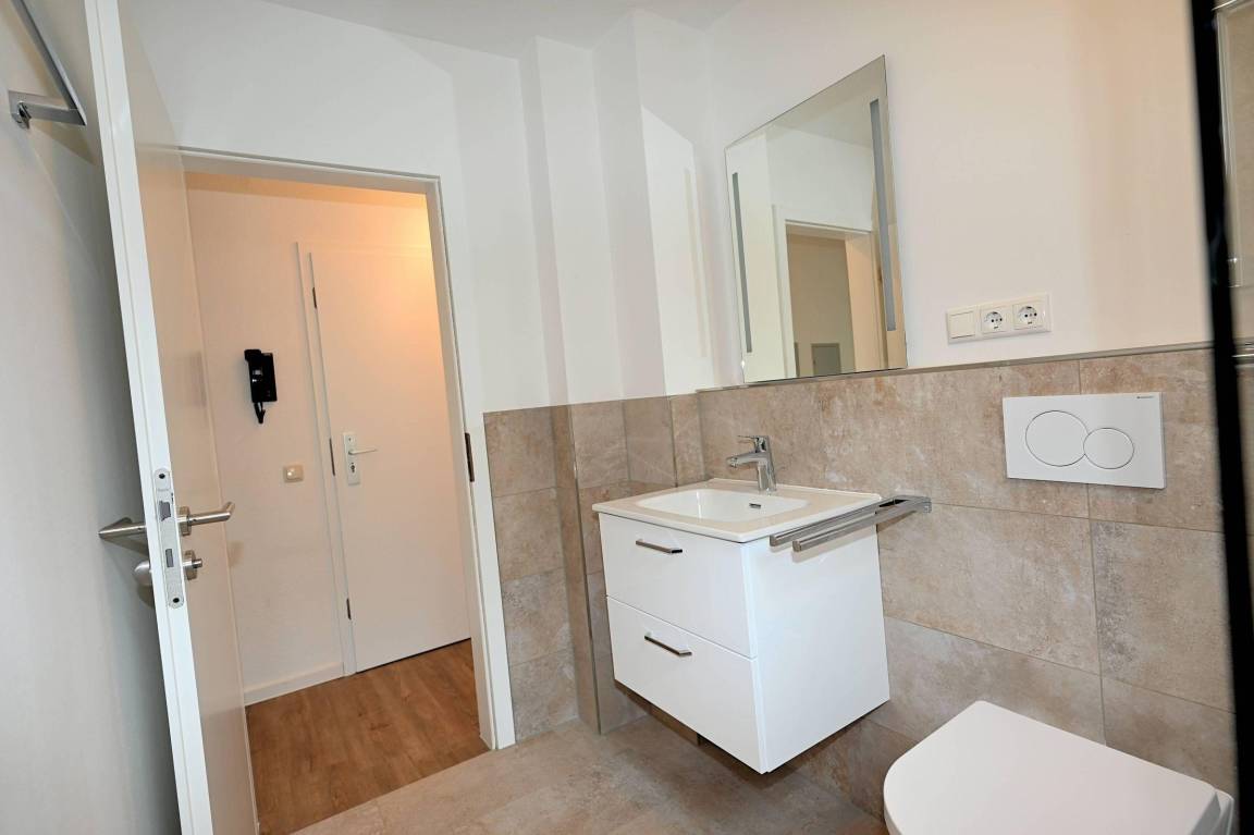 Das moderne Badezimmer überzeugt mit einer ebenerdigen Regendusche und großzügigem Stauraum für Pflegeprodukte. Eine Waschmaschine zur gemeinschaftlichen Nutzung befindet sich im Keller des Hauses. WLAN ist ebenfalls verfügbar, während ein Parkplatz direkt vor dem Haus bereitsteht. Hunde sind nicht gestattet.