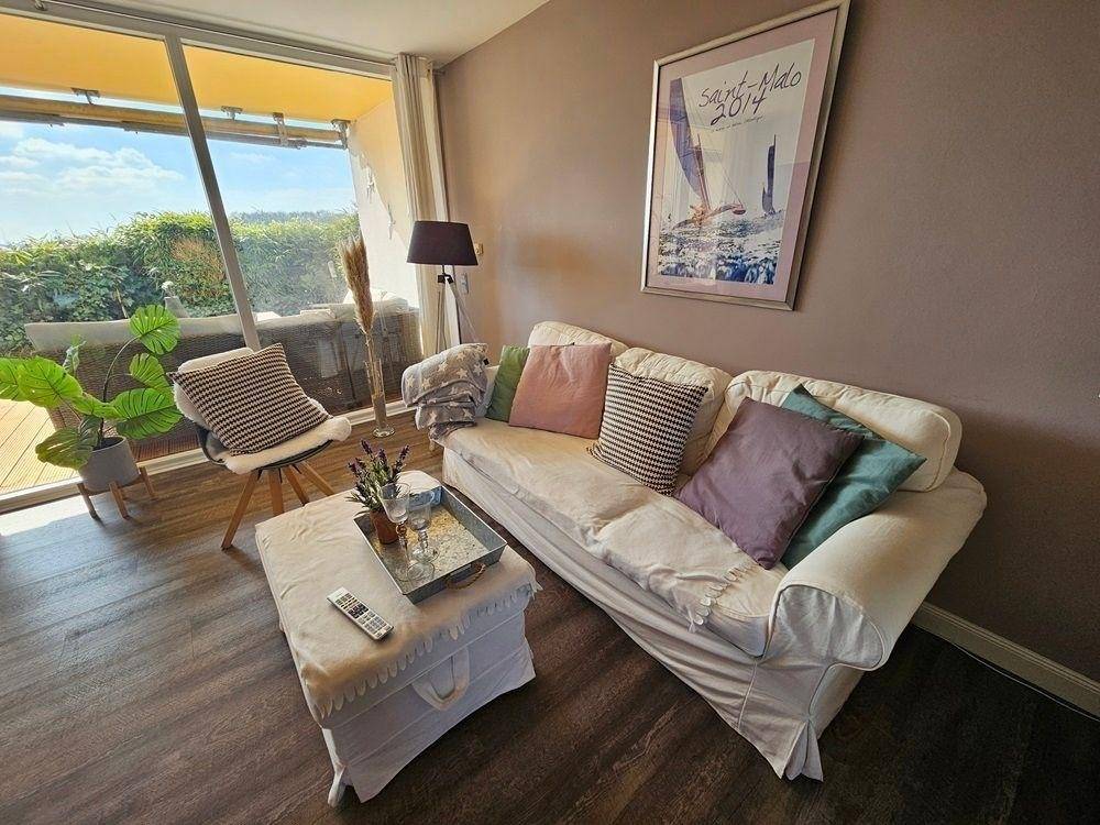 Das Vermittlungsportal präsentiert eine moderne und gemütliche Ferienwohnung, die direkt an der Steilküste gelegen ist und einen traumhaften Meerblick bietet. Der Außenbereich umfasst eine möblierte Terrasse, die ideal für entspannte Stunden im Freien ist. Diese private Fläche lädt zum Verweilen ein und bietet die Möglichkeit, die ruhige Lage in vollen Zügen zu genießen. Die Wohnung ist zudem nur etwa 5 Gehminuten vom feinen Sandstrand entfernt, was weitere Optionen für Aktivitäten im Freien eröffnet.